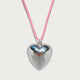 A vibrant pink cord paired with an oversized heart pendant. Cute, bold, and perfect for Y2K-inspired outfits.