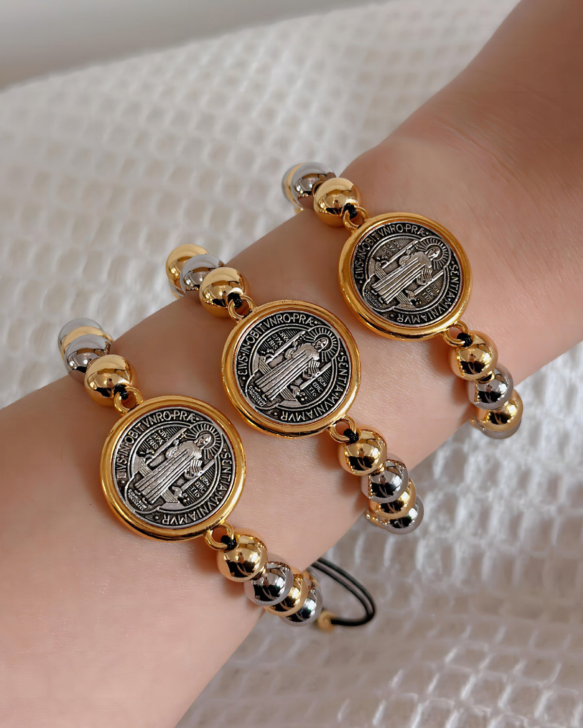 Amelia Virgin Mary String Beaded Golden Bracelet