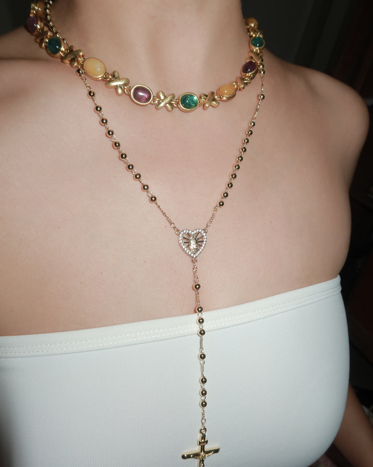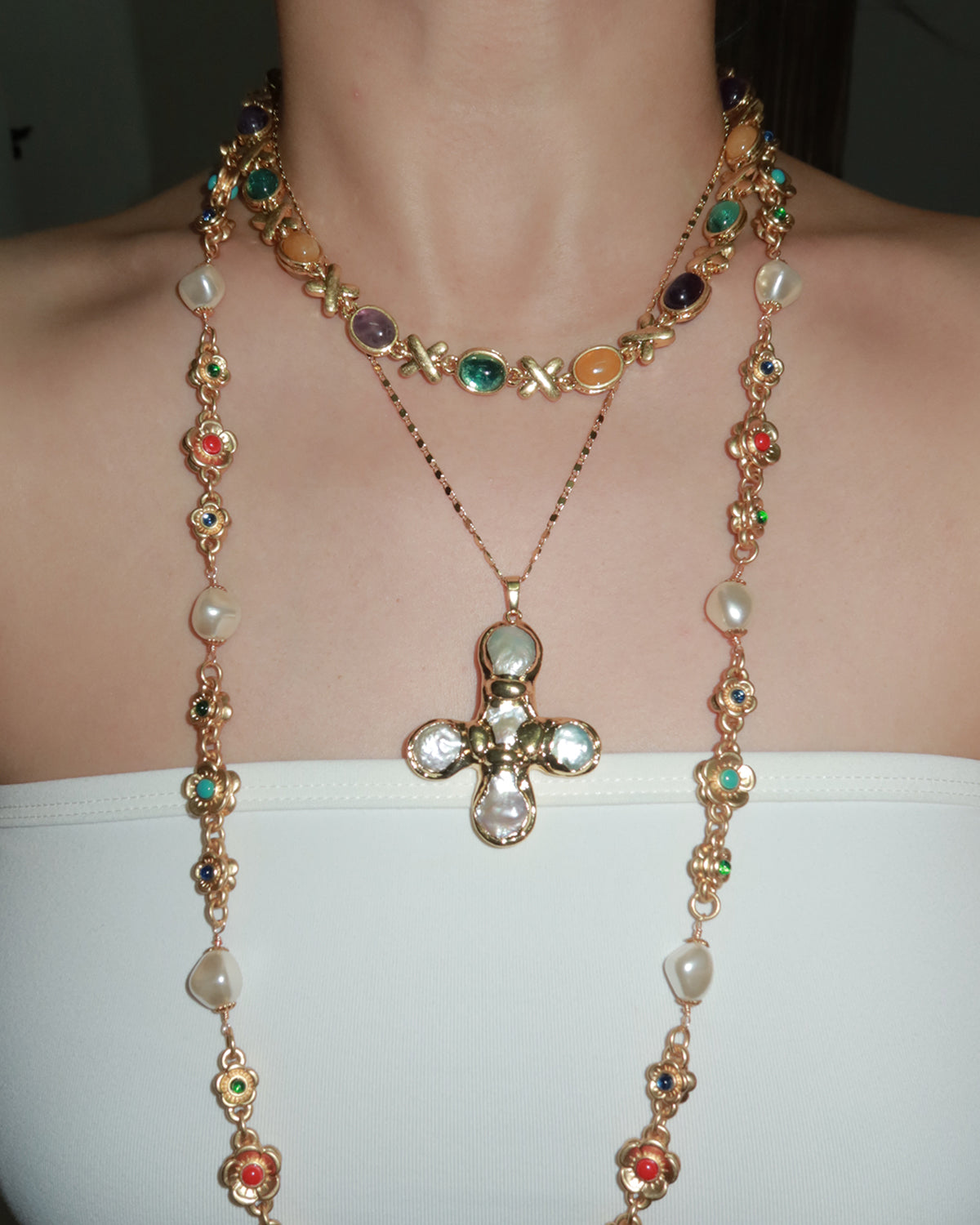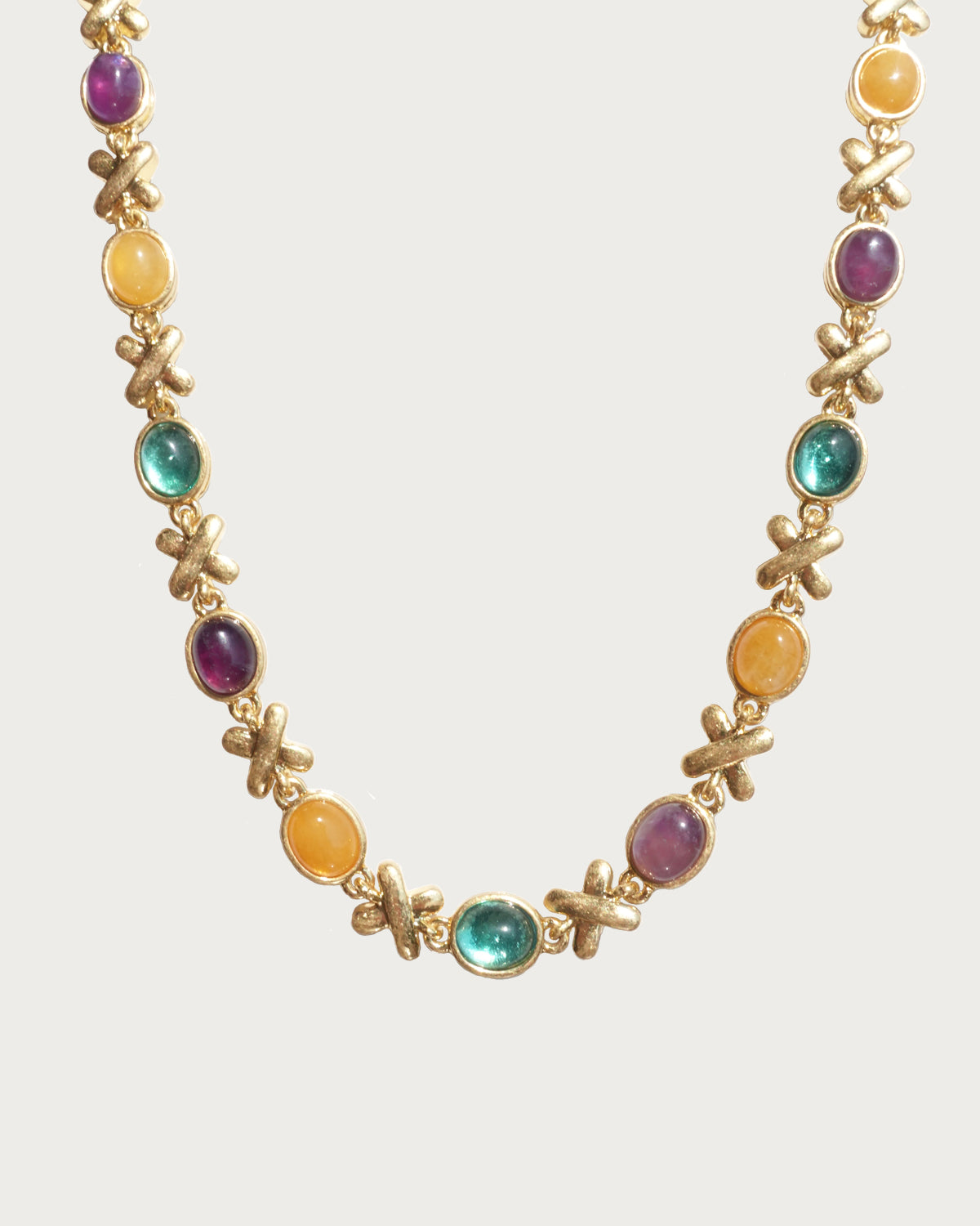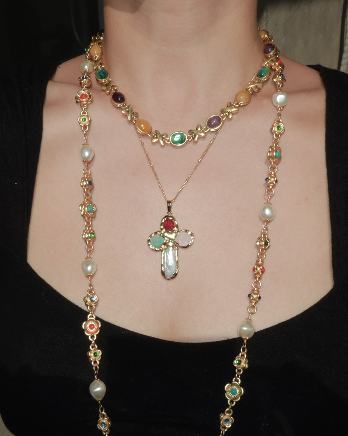 A true vintage treasure — this candy-colored glass pendant is a playful and artistic piece. With intricate detailing, it captures a retro artistic soul and vibrant energy. A bold yet elegant accent for any outfit.