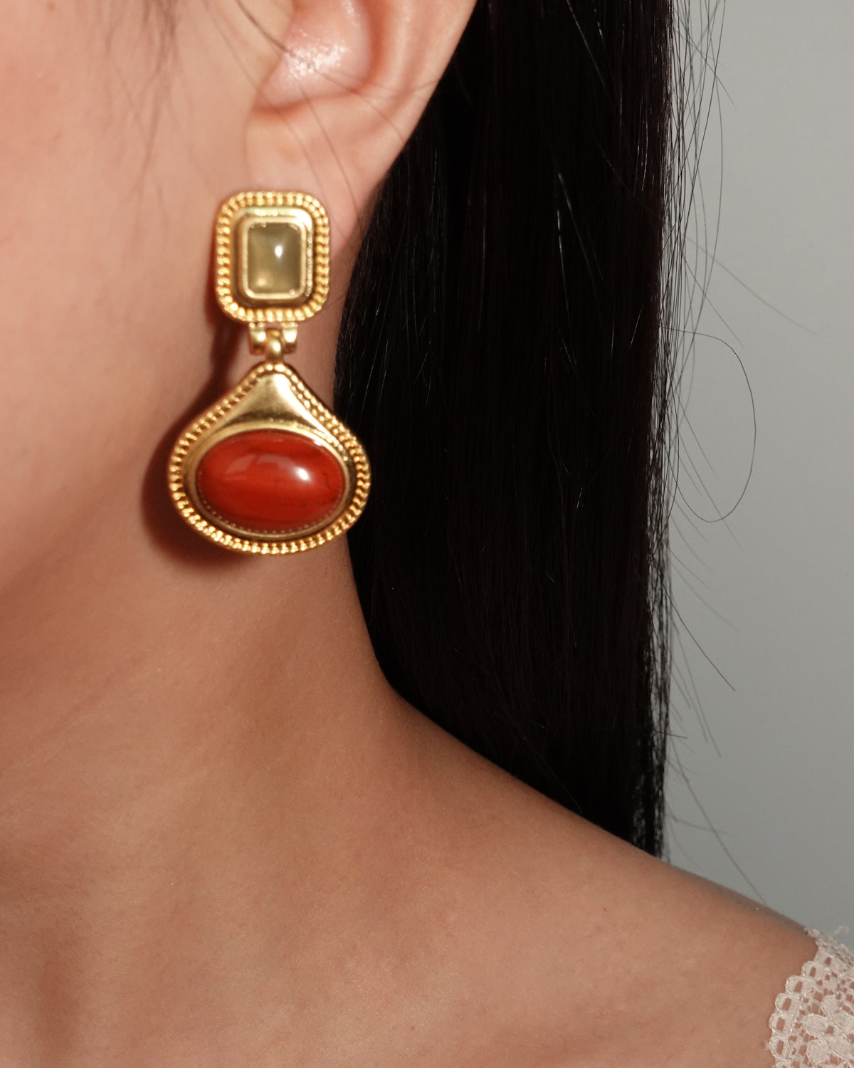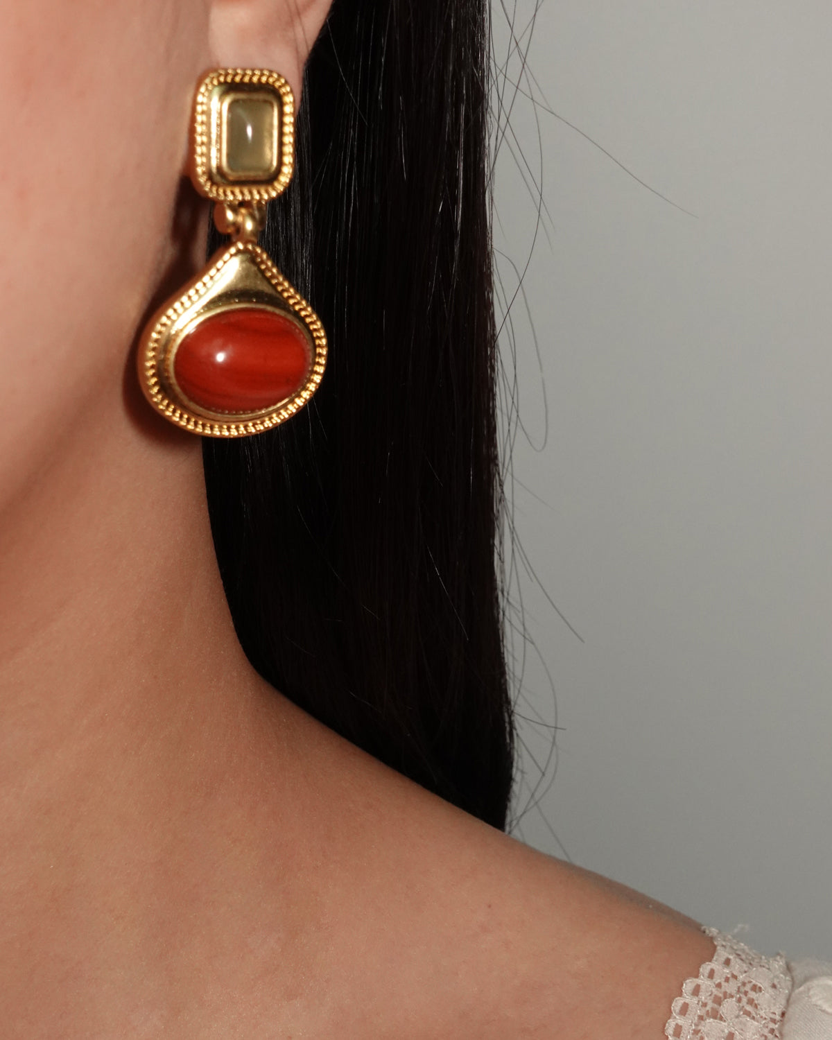 Bonnie Vintage Natural Stone Golden Stud Earrings