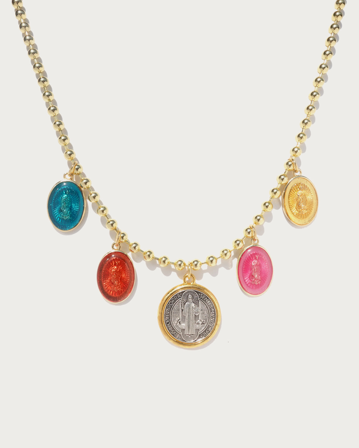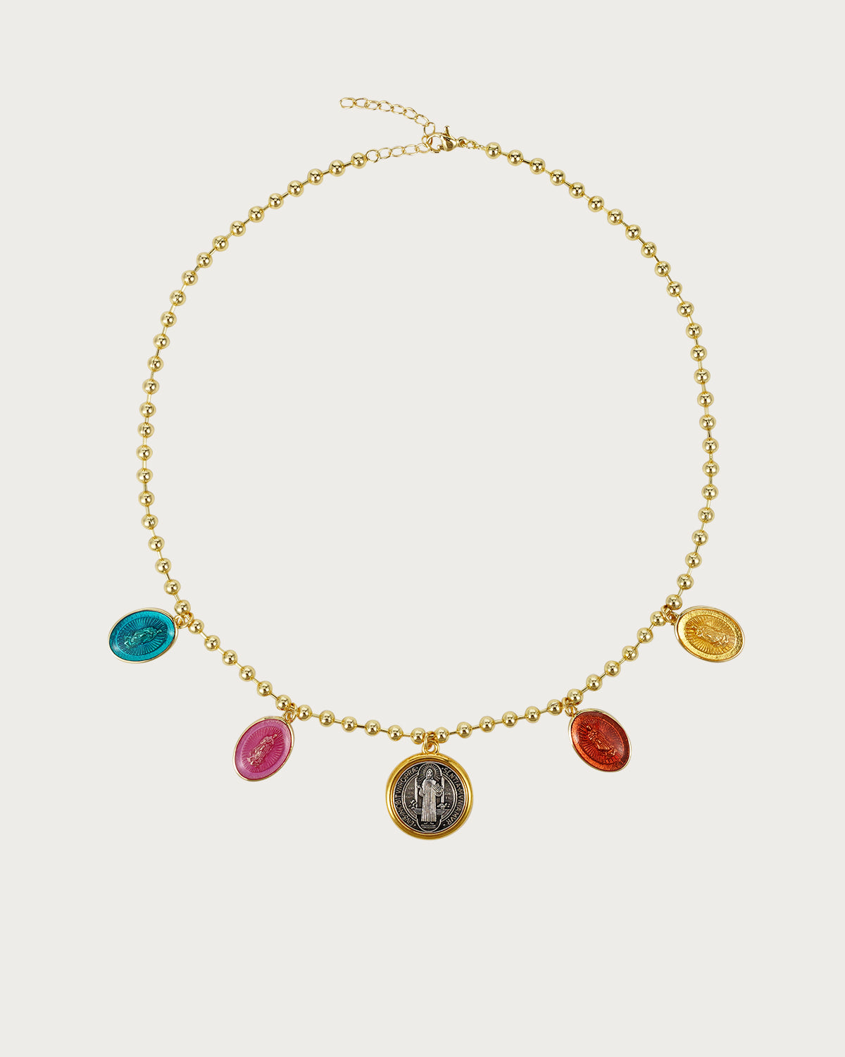 Bridget Jesus Colorful Golden Beaded Pendant Necklace