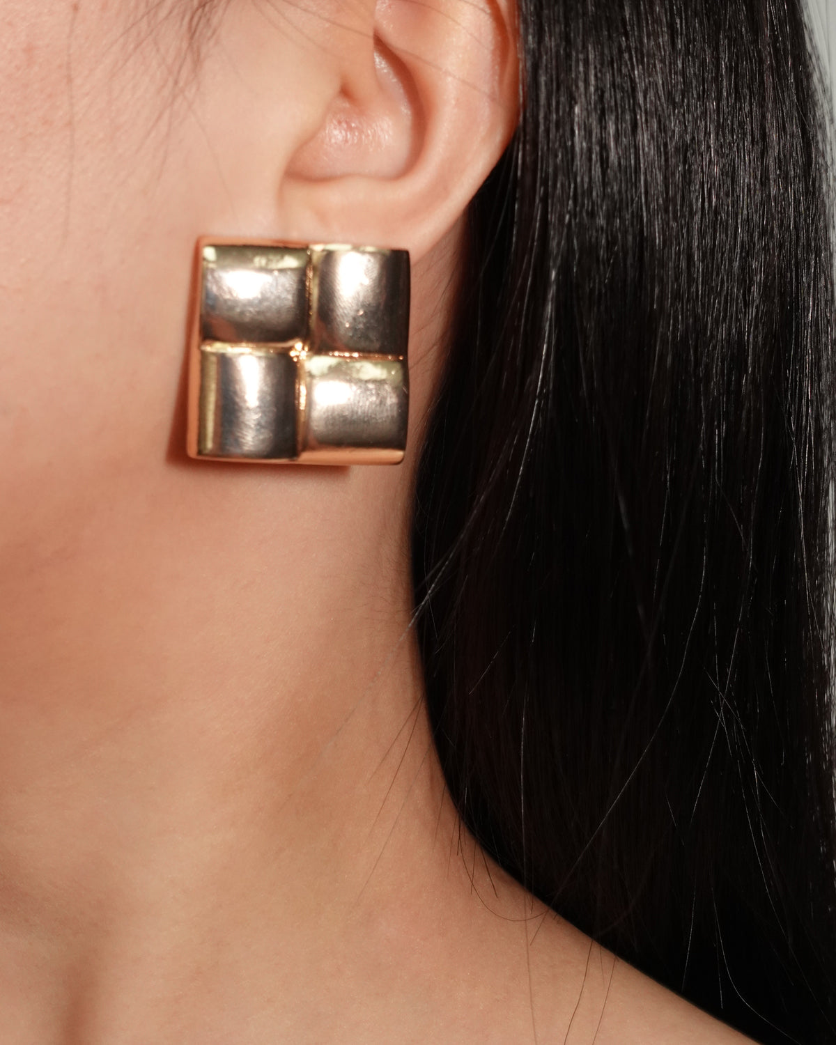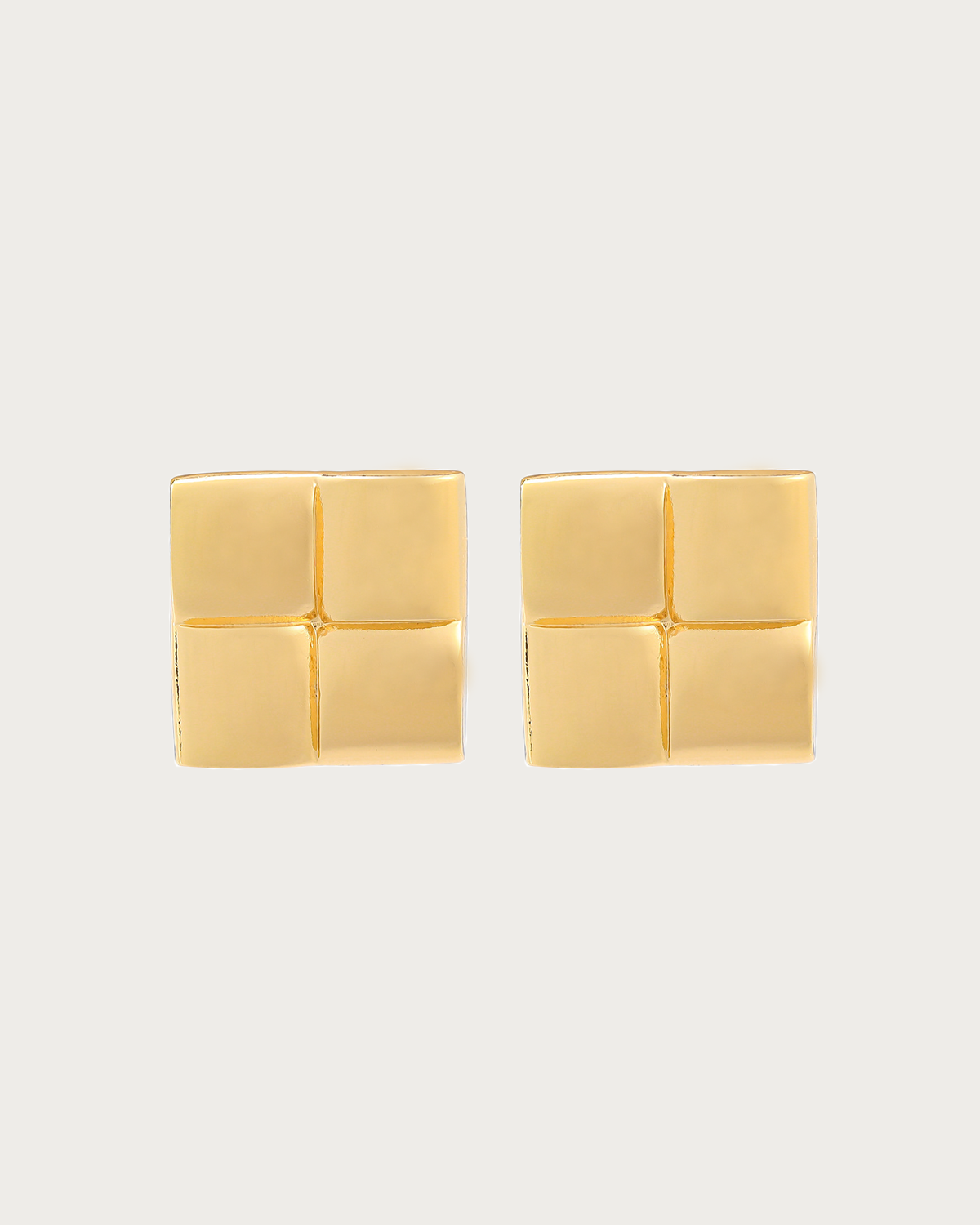 The Square Block Golden Stud Earrings feature a sleek geometric design, perfect for a modern and sophisticated look.