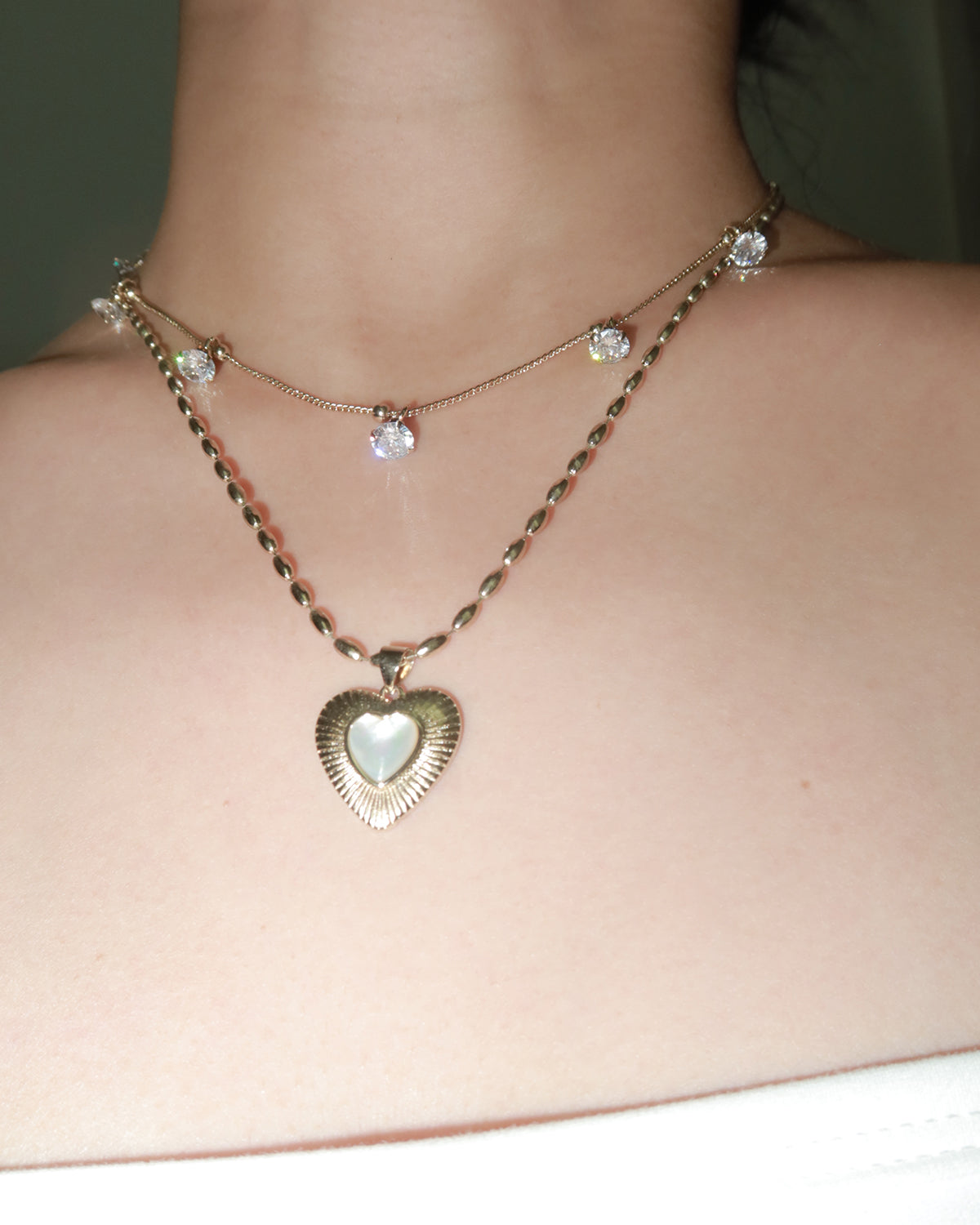 Constance Heart Mother Of Pearl Double Layer Silver Necklace