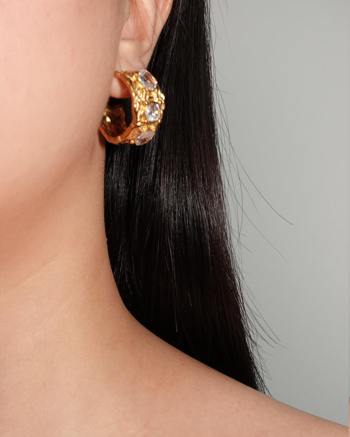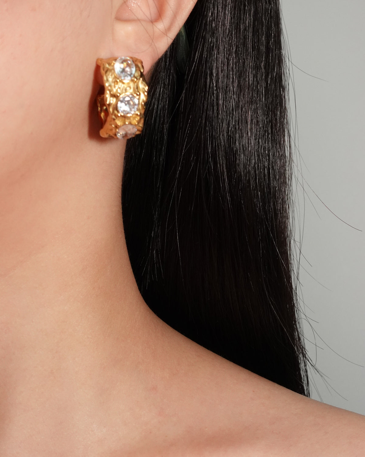 The Golden Melted Stud Earrings feature a contemporary melted design, offering a bold and artistic take on classic studs.