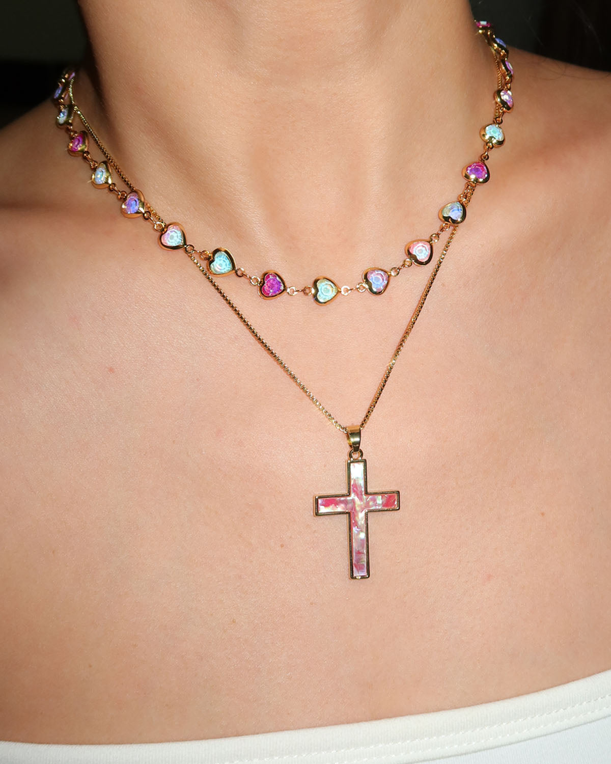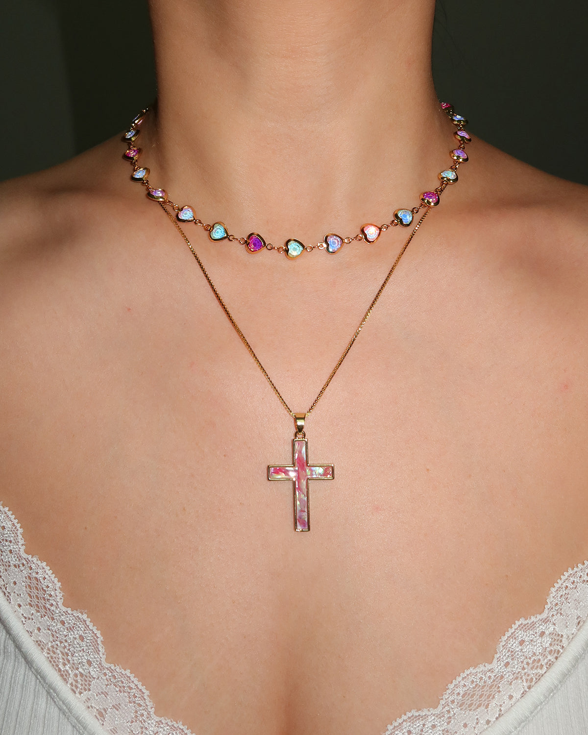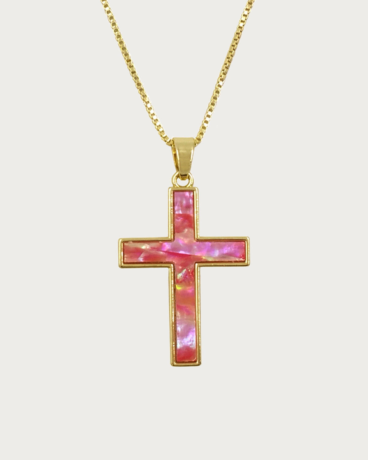 Add a touch of coastal charm with this glossy pink natural shell cross pendant. The soft luster of the shell and delicate design make it perfect for everyday elegance or beachy layered looks.
