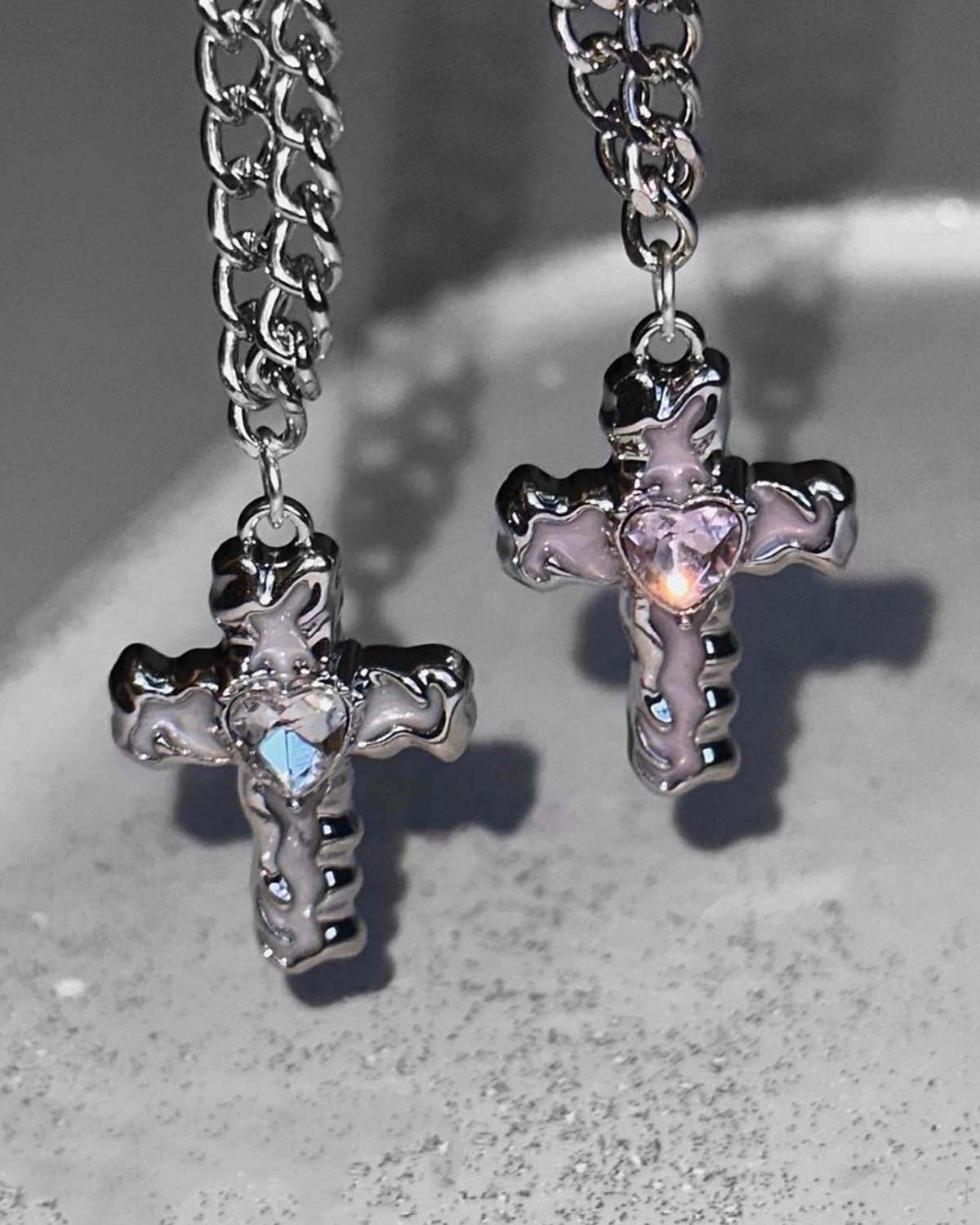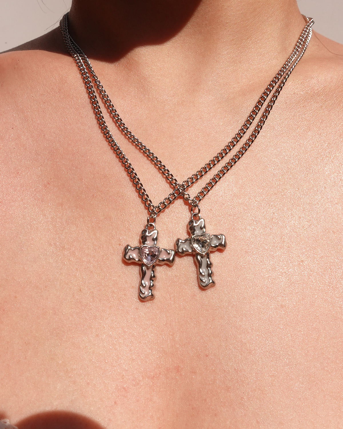 Elsa White Cross Silver Pendant Necklace(2 Colors)