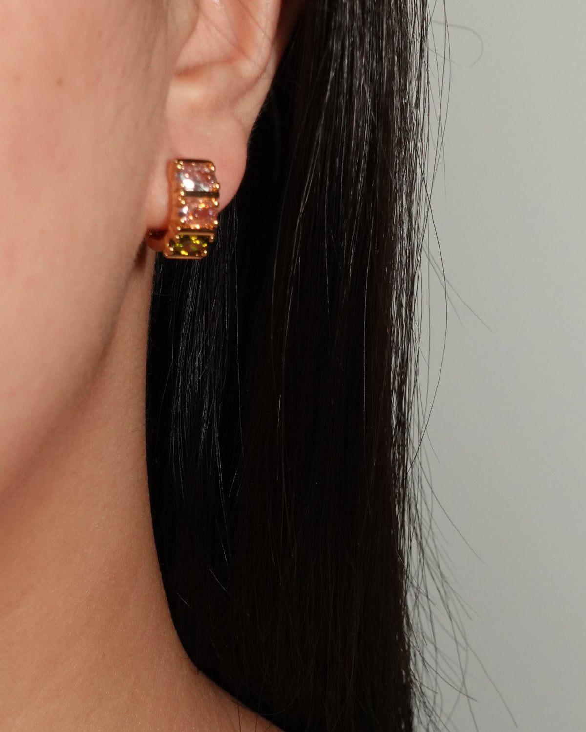 Ethel Colorful Stone Hollow Golden Hoop Earrings