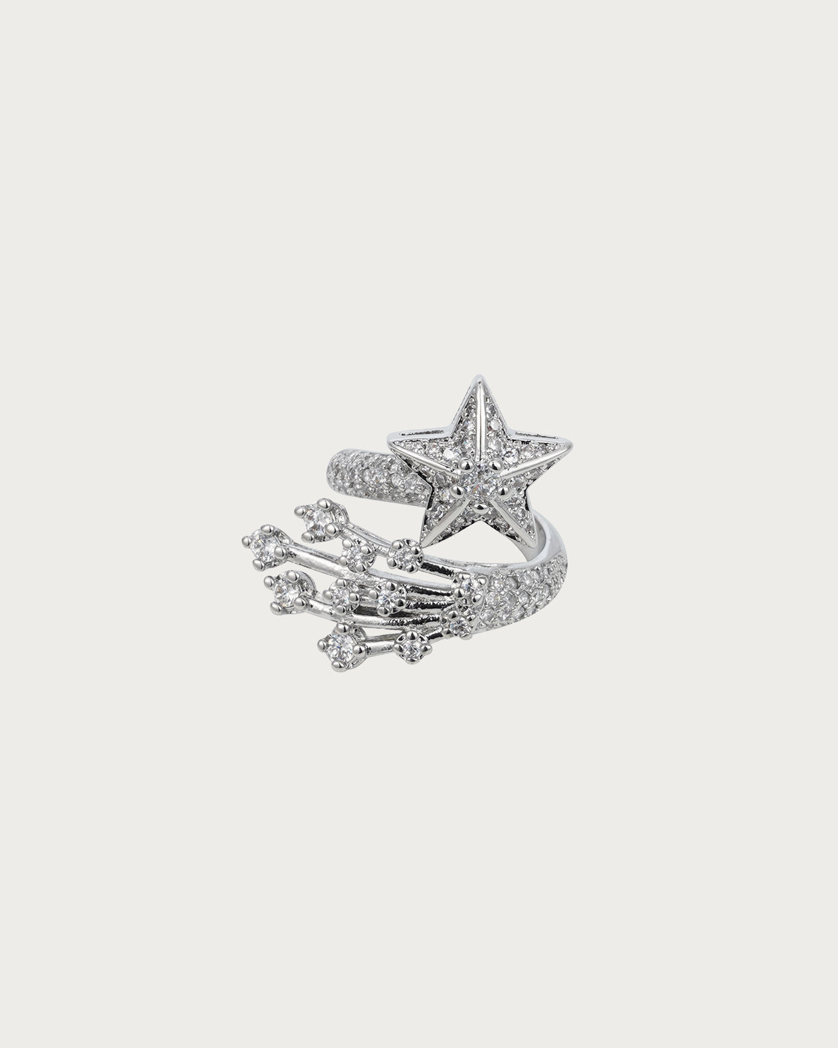 Inspired by the night sky, this Sparkle Meteor Silver Ring brings cosmic elegance to any outfit, perfect for casual and dressy occasions.