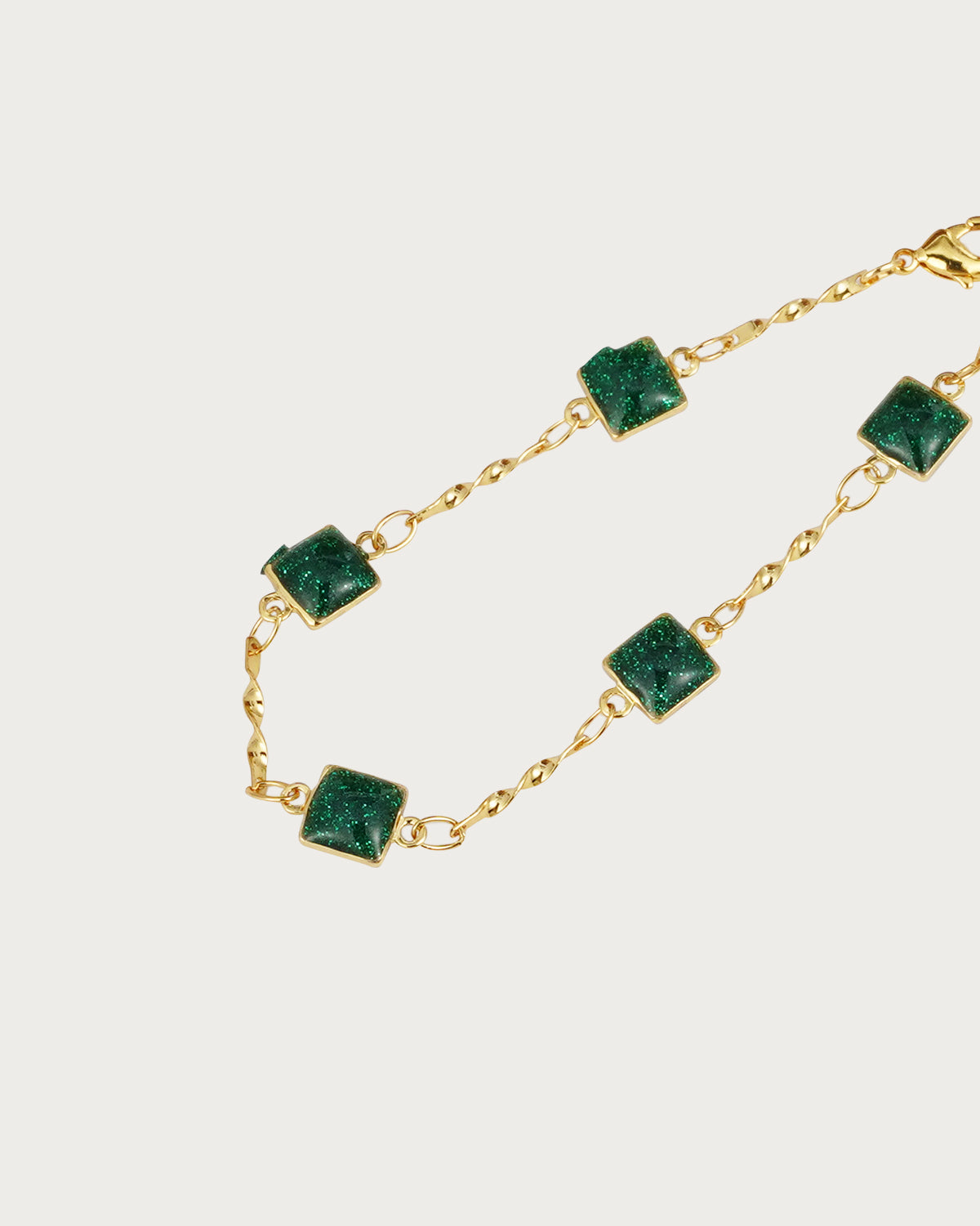Hedy Green Square Enamel Beaded Golden Bracelet