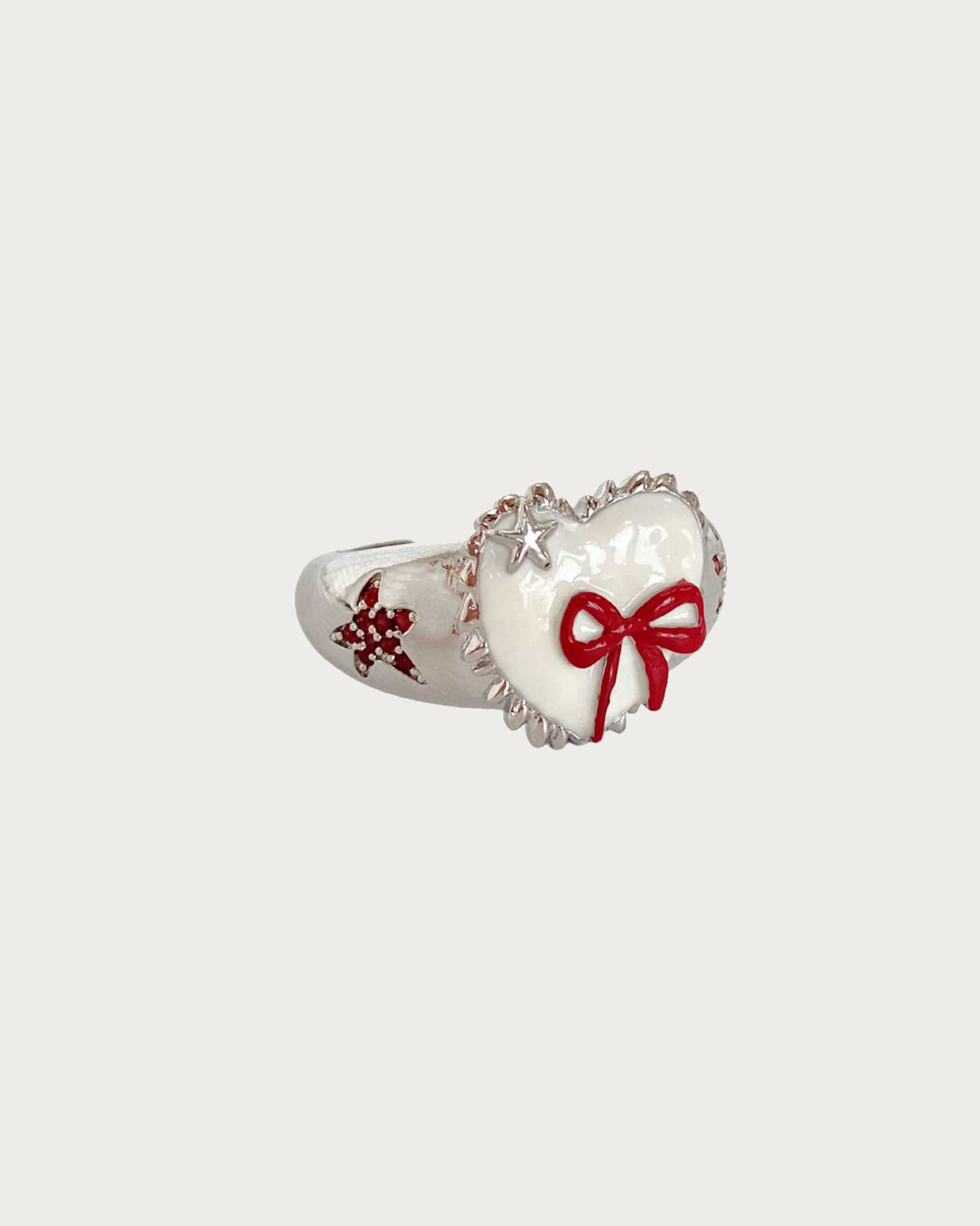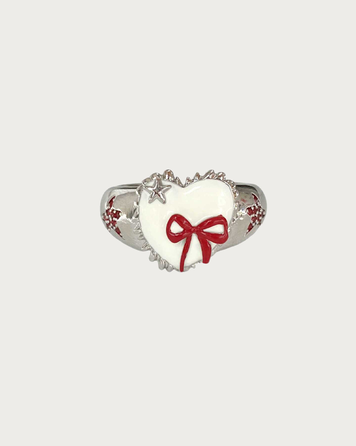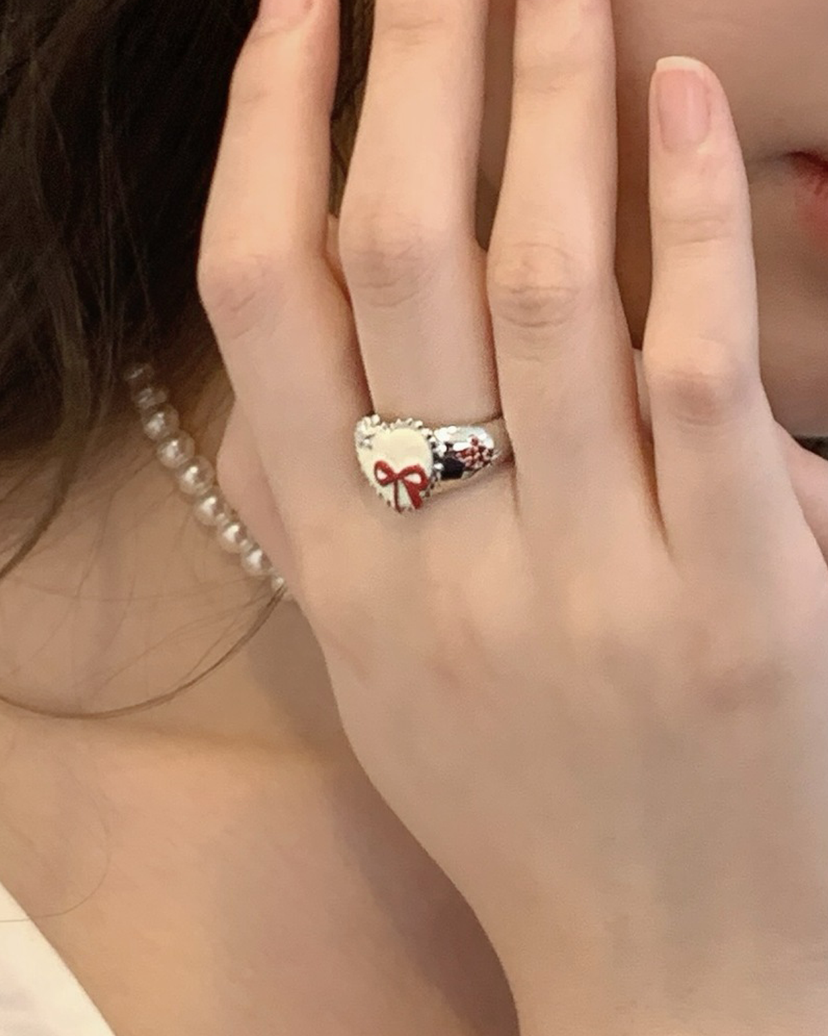 This sweet heart red bow silver ring adds a playful and romantic touch to your jewelry collection.