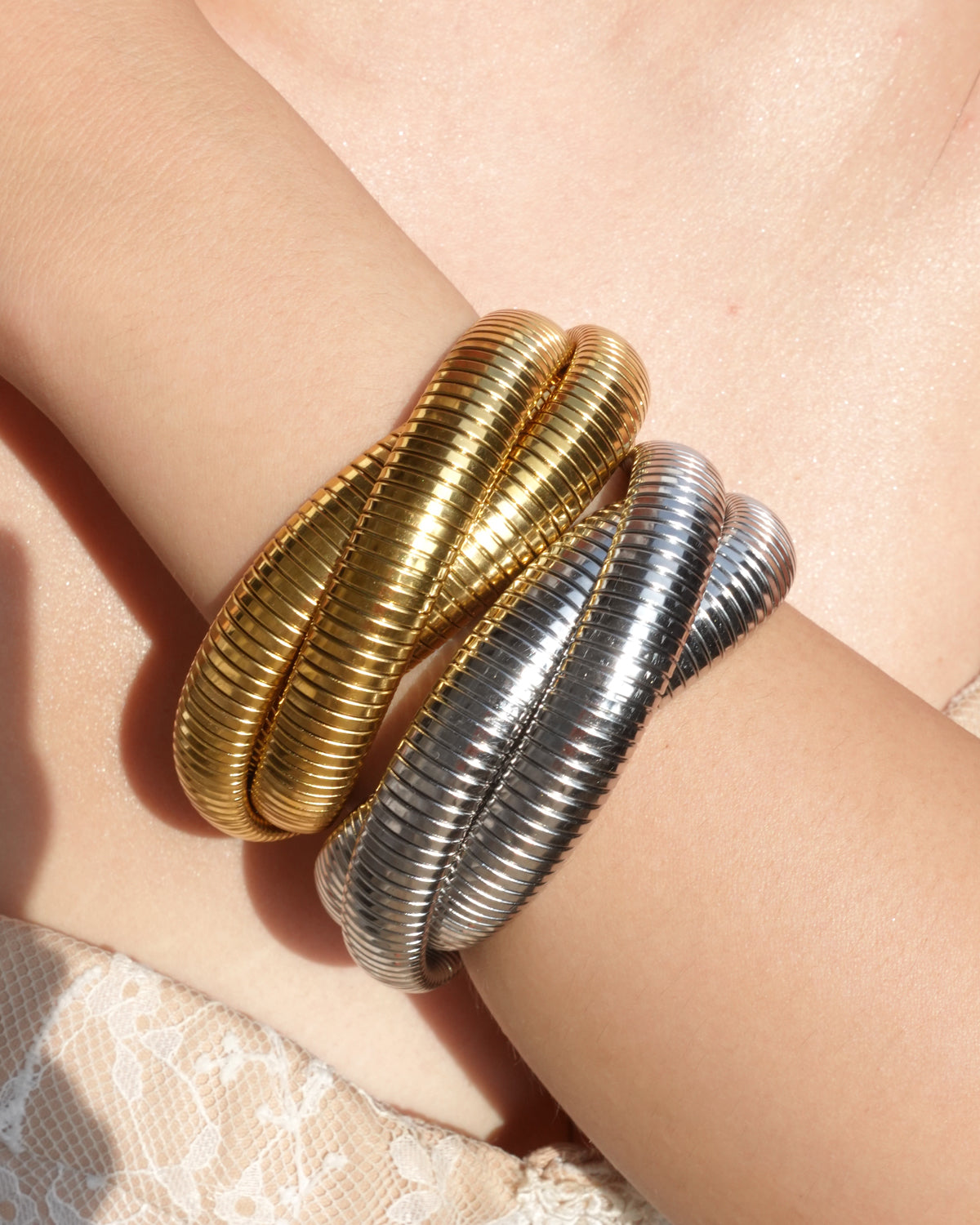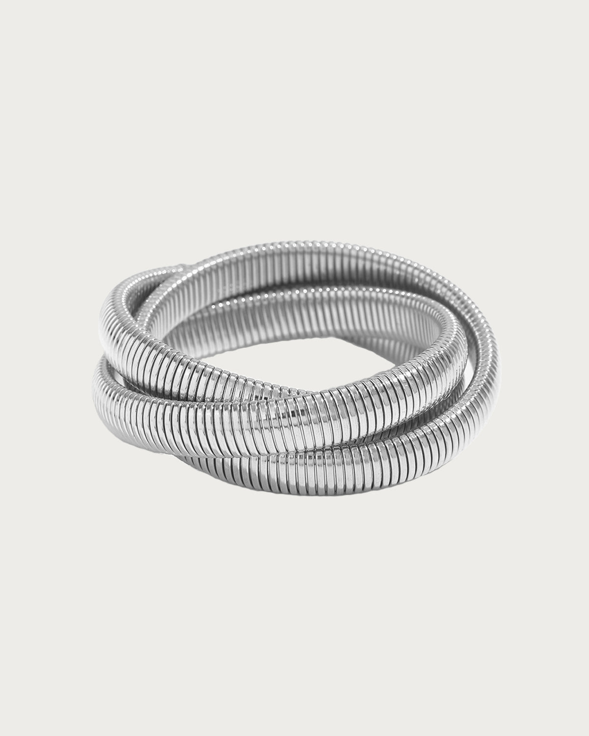 Minimal, metallic, unforgettable. Loop into the past with this modern retro silver piece.