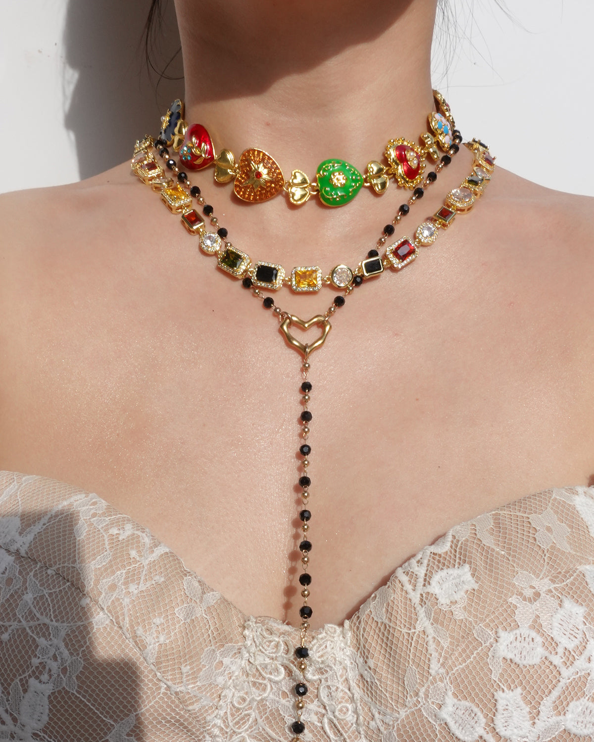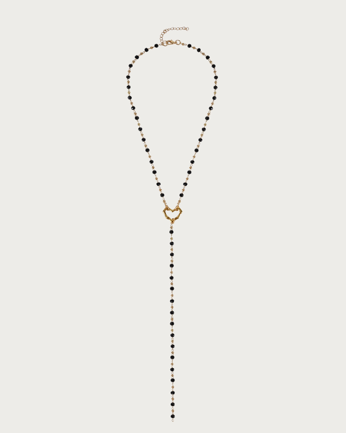 Mabel Black Beaded Heart Golden Lariat Necklace
