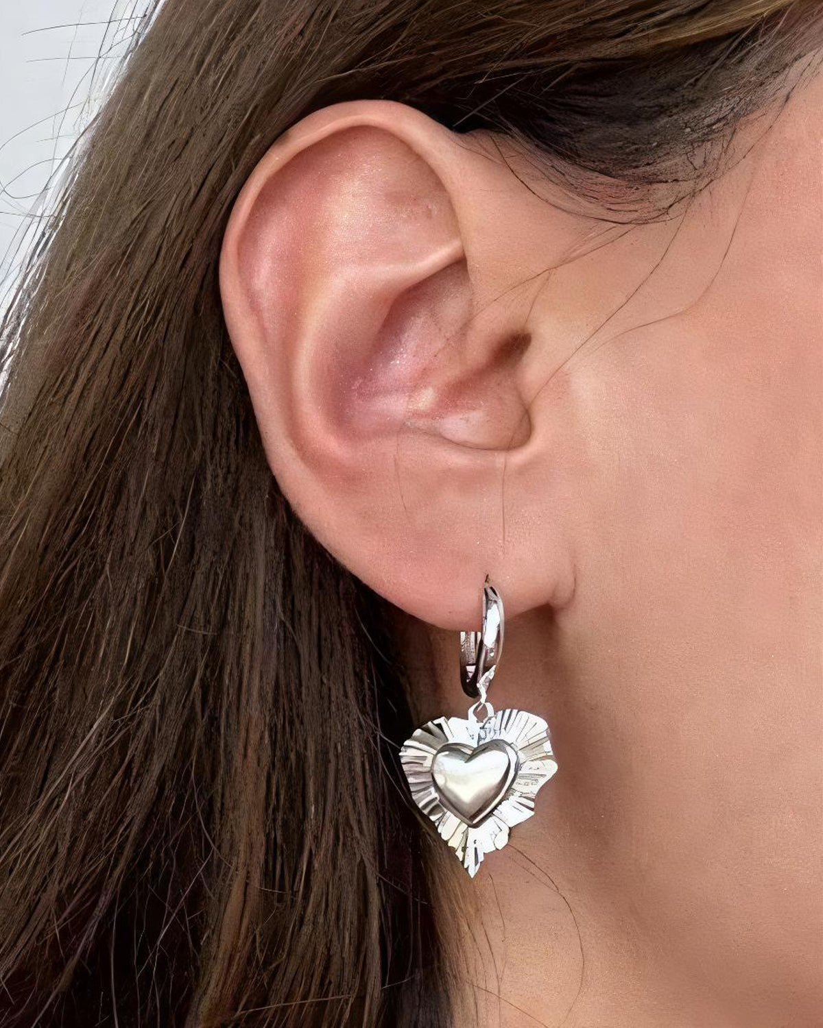 Crafted from high-quality silver, these heart-shaped hoop earrings offer a balance of charm and sophistication with their delicate creased texture.