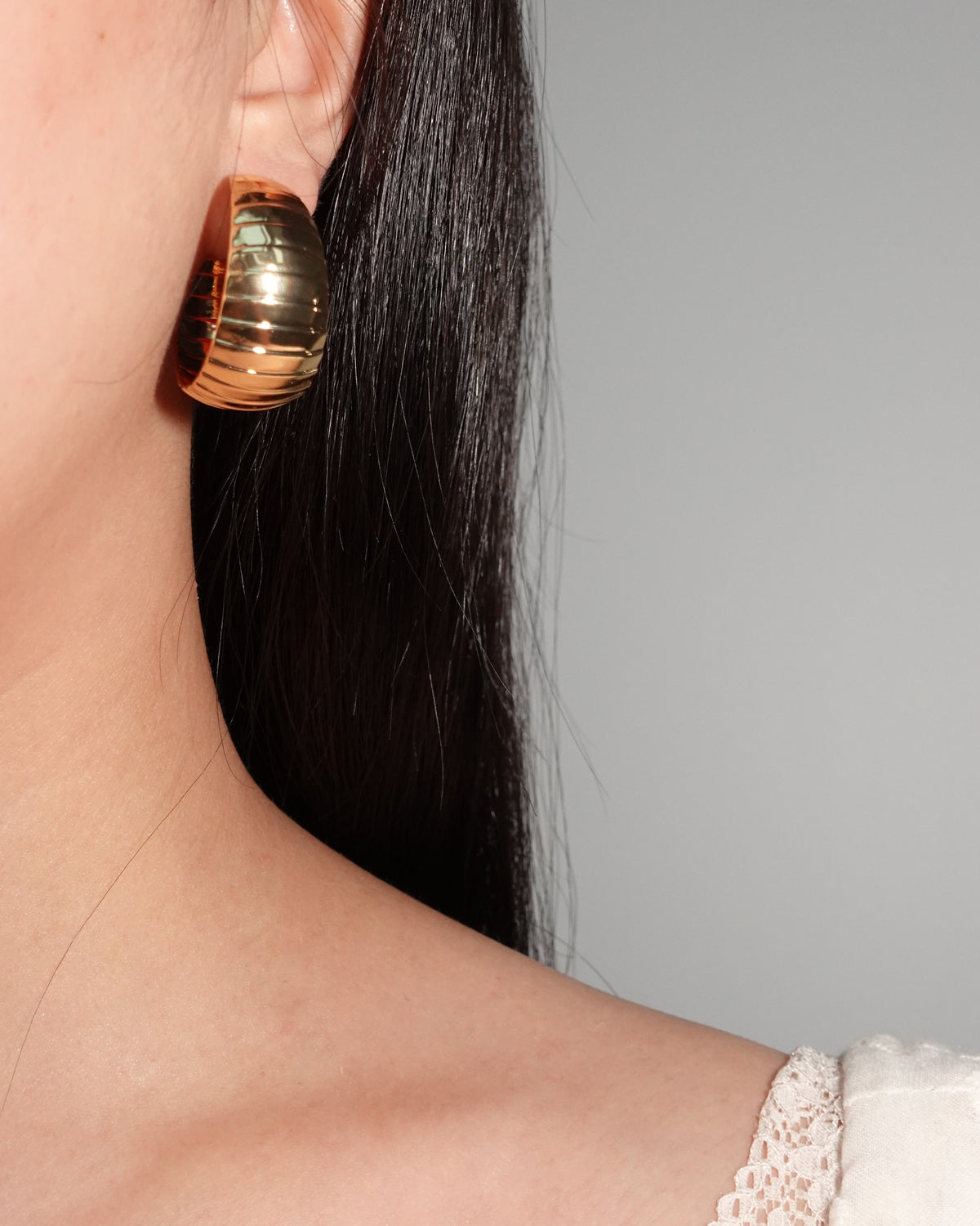 The Step Golden Hoop Earrings instantly enhance any ensemble with their unique texture and radiant gold finish.