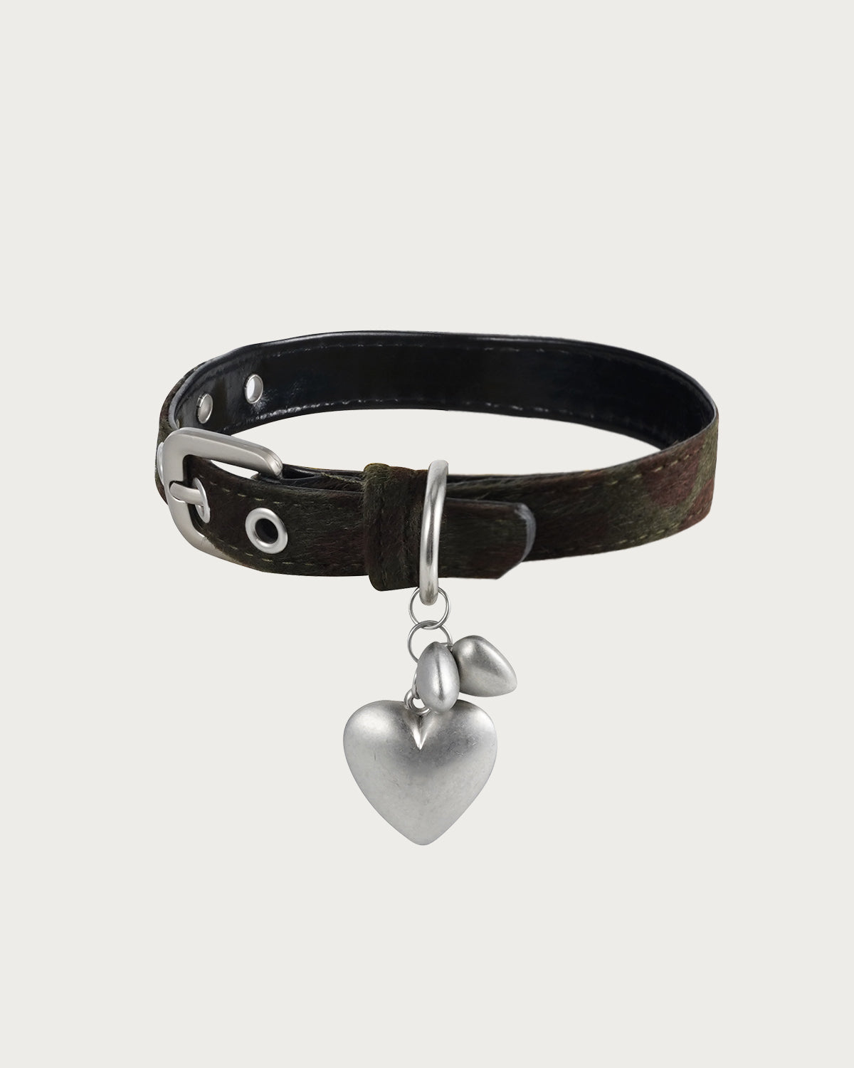 This Camouflage Heart Silver Necklace combines the toughness of camouflage with the softness of a heart, creating a bold yet feminine accessory.