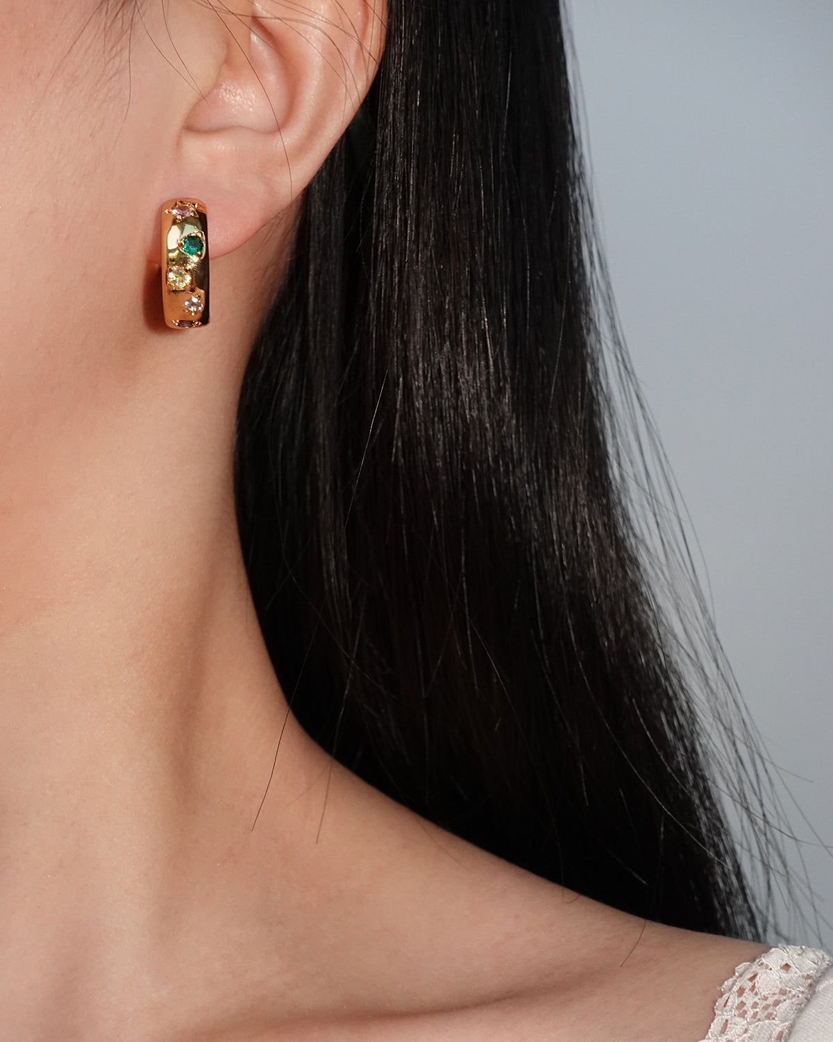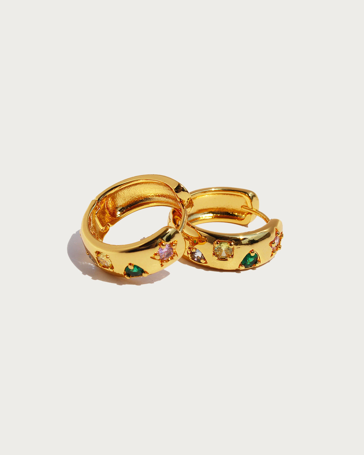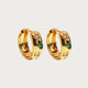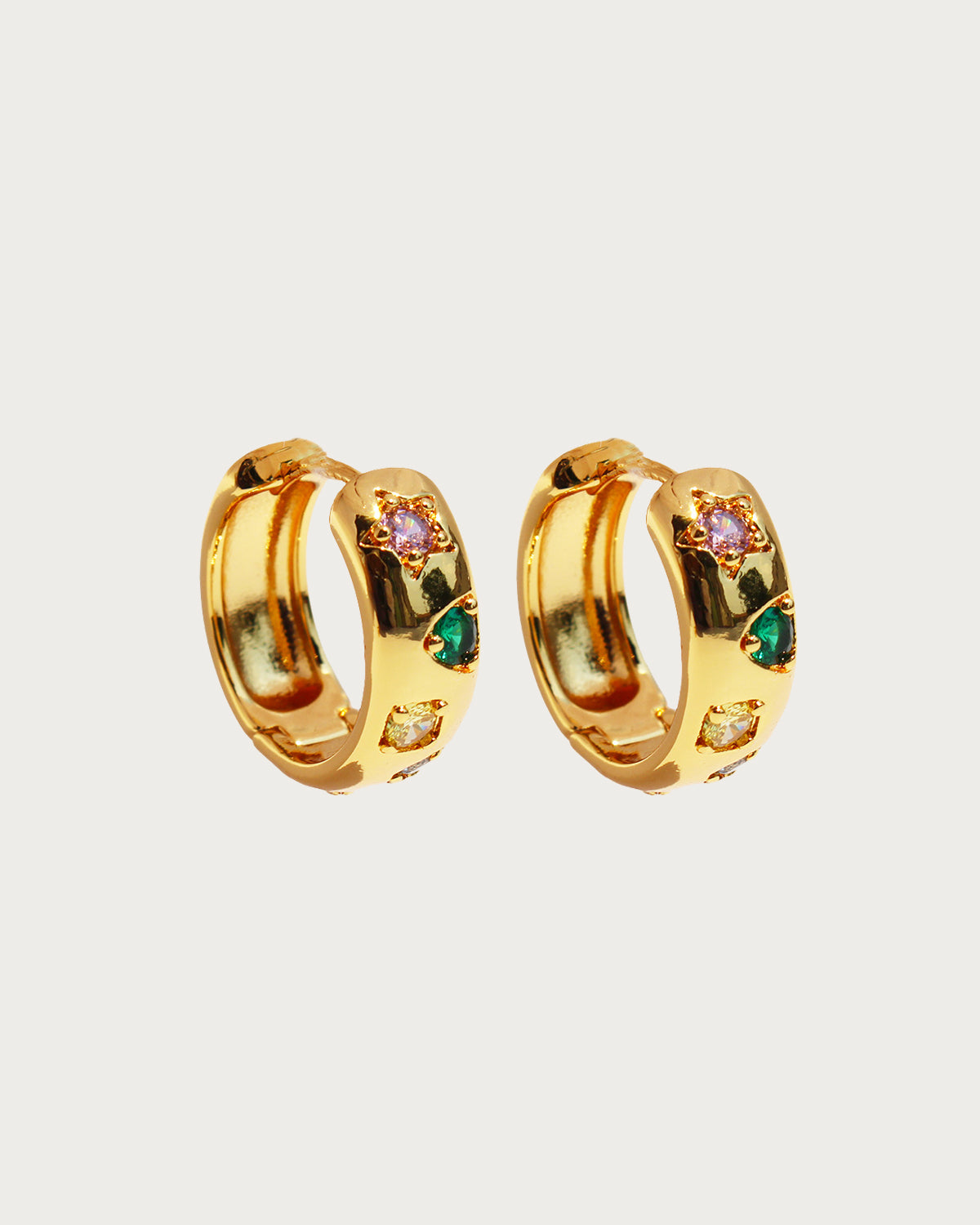 Shine bright with these vibrant golden hoops featuring chunky stars in colorful designs.
