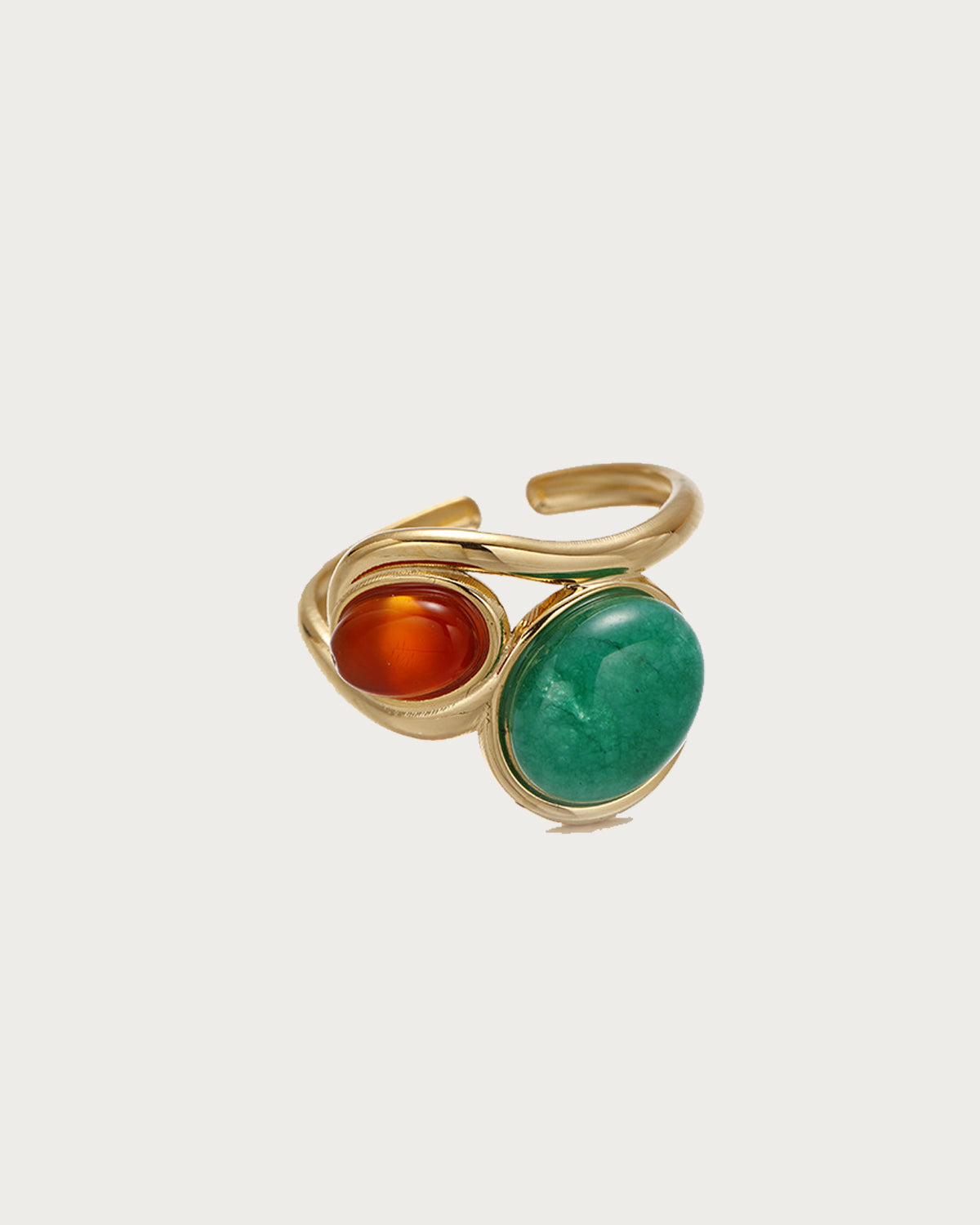 Material: 18k gold plated brass, carnelian stone, Malaysian Jade.