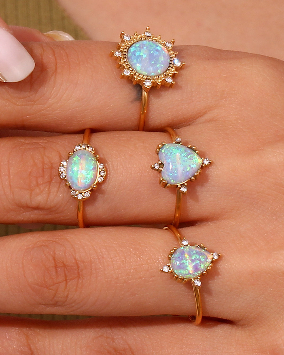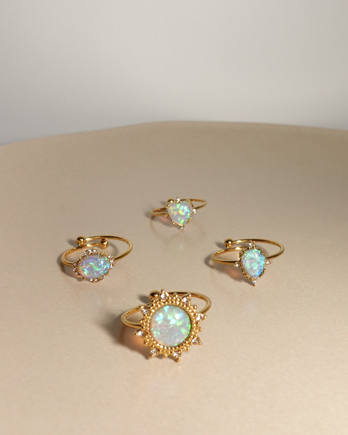 The Opal Golden Ring features a mesmerizing opal stone set in a radiant gold band, exuding timeless beauty and charm.