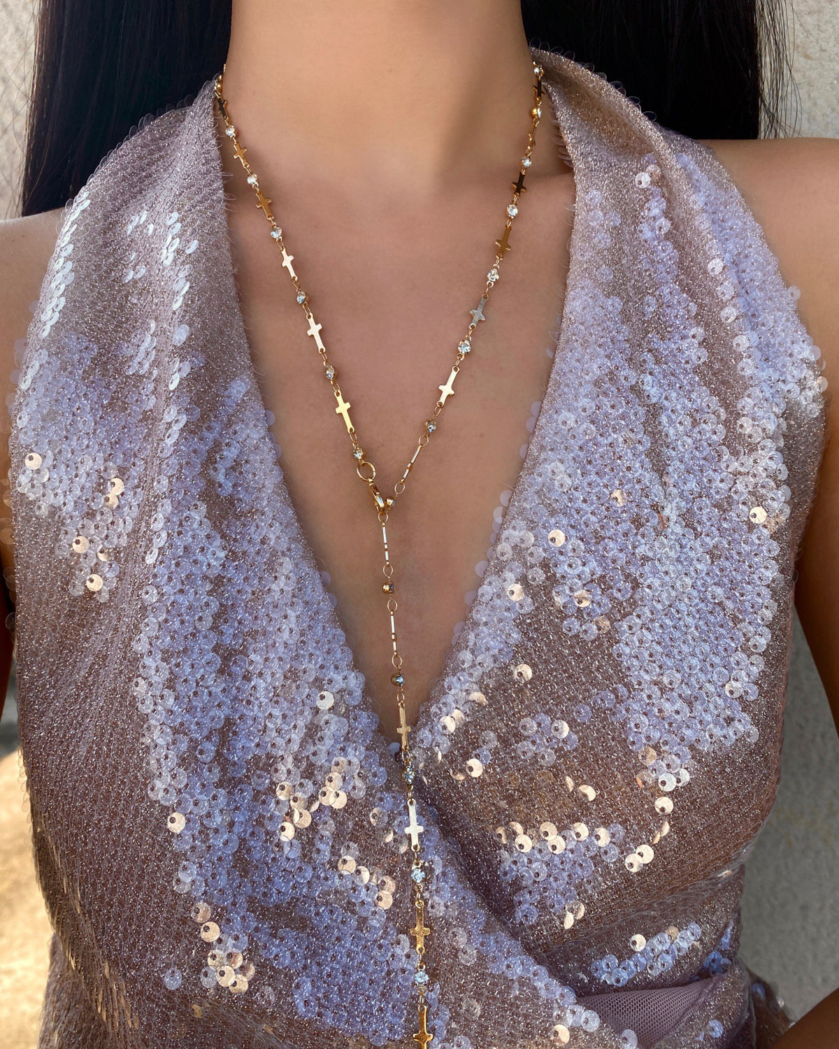 Elevate your style with the sleek Cross Golden Lariat Necklace — perfect for layering or solo shine.