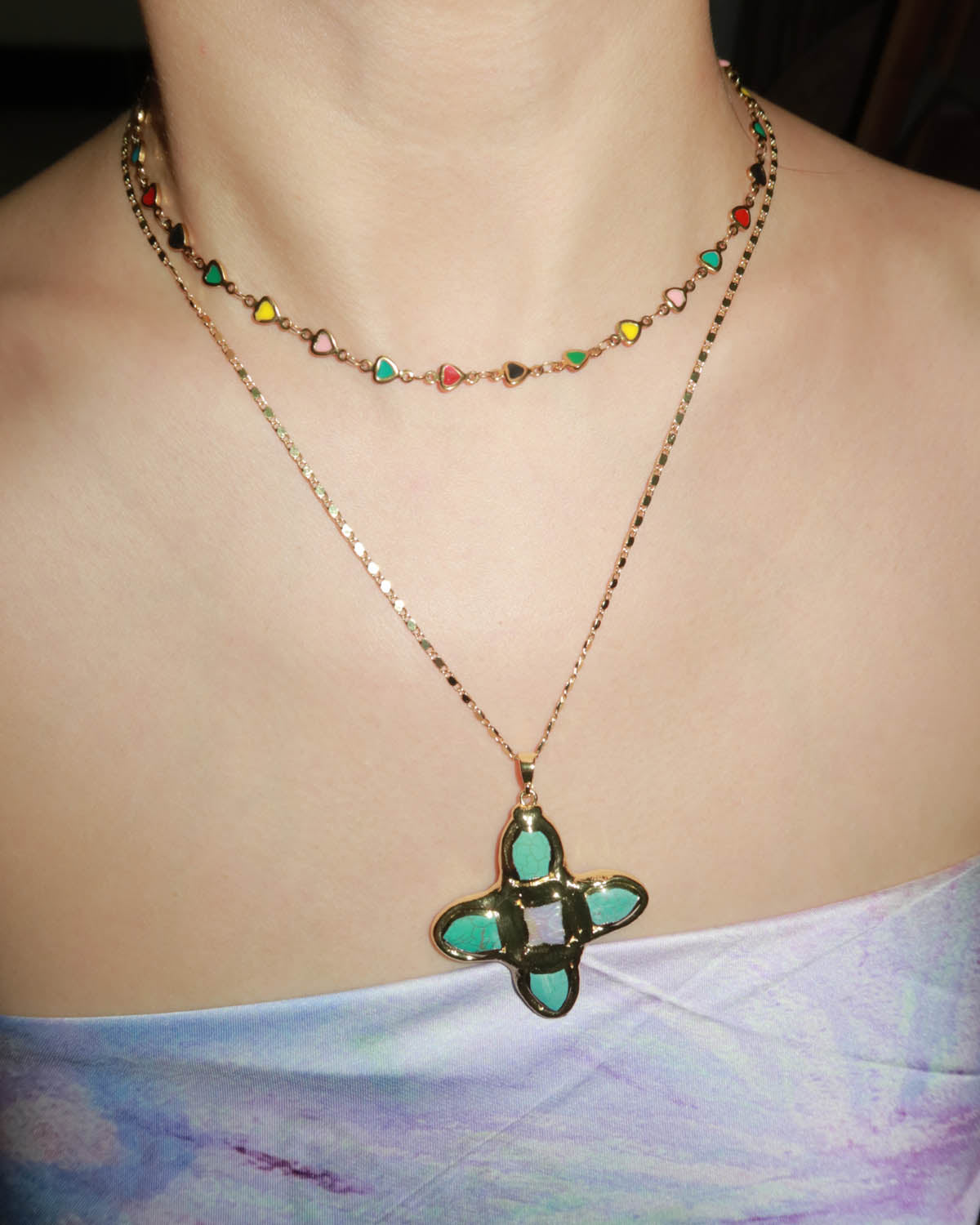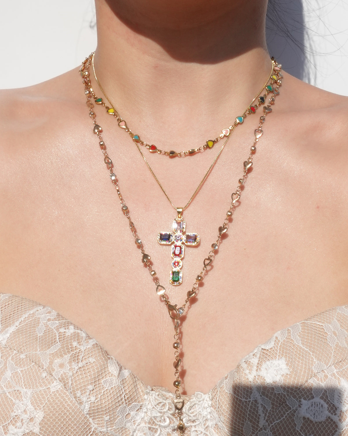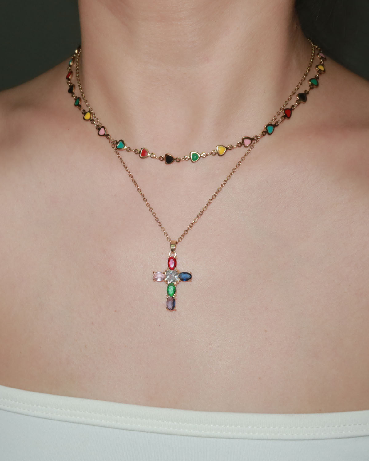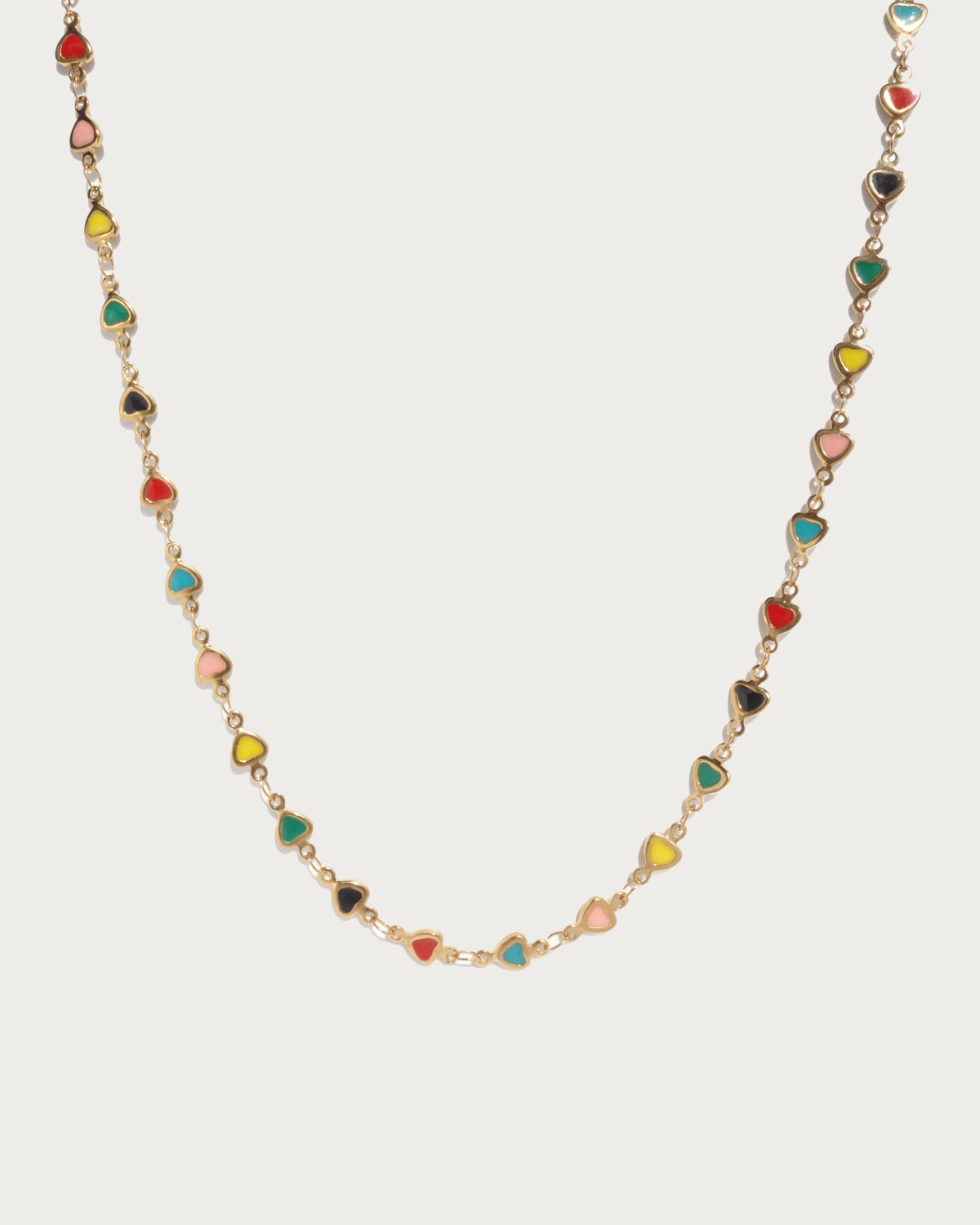 Eudora Rainbow Heart Enamel Beaded Golden Necklace