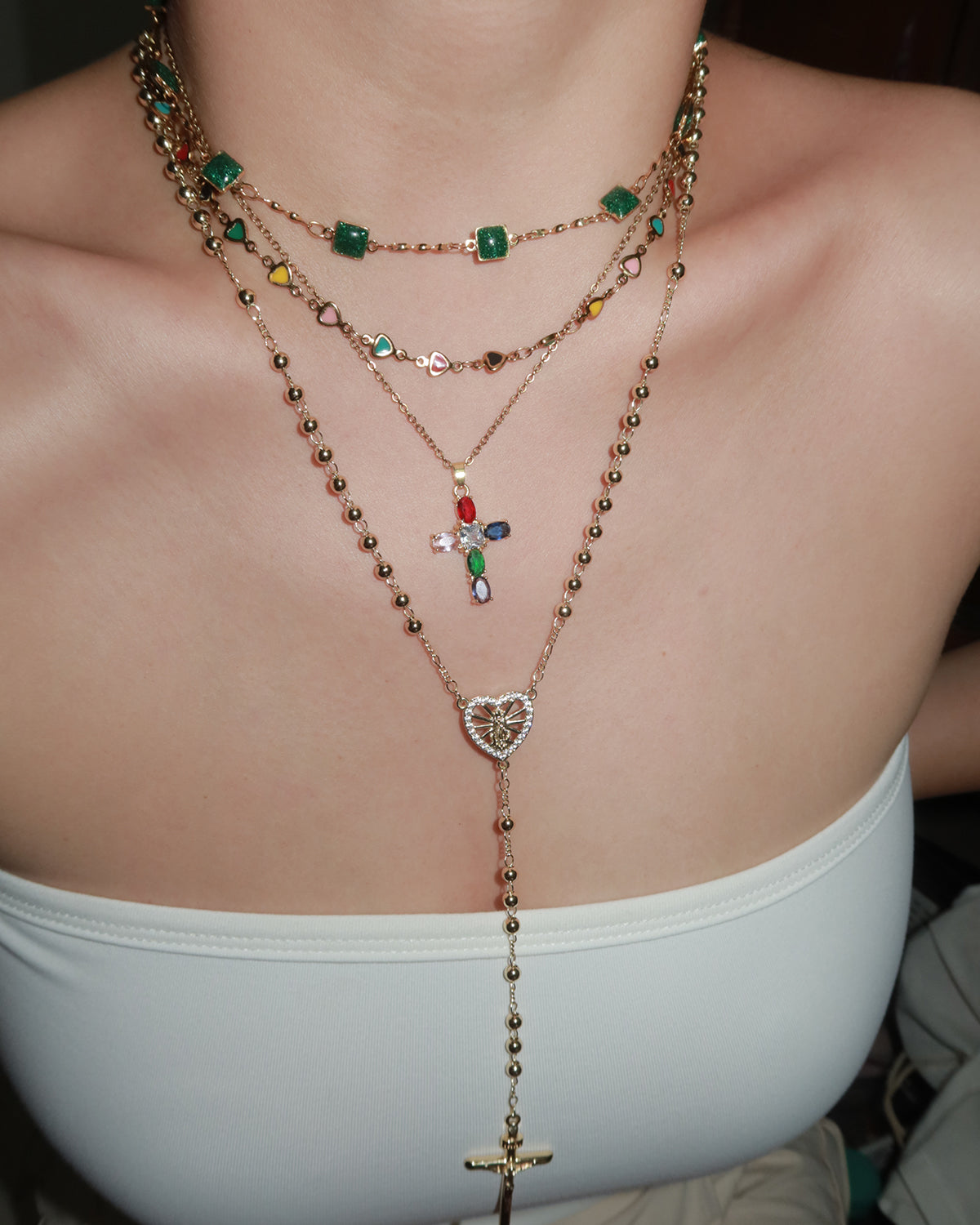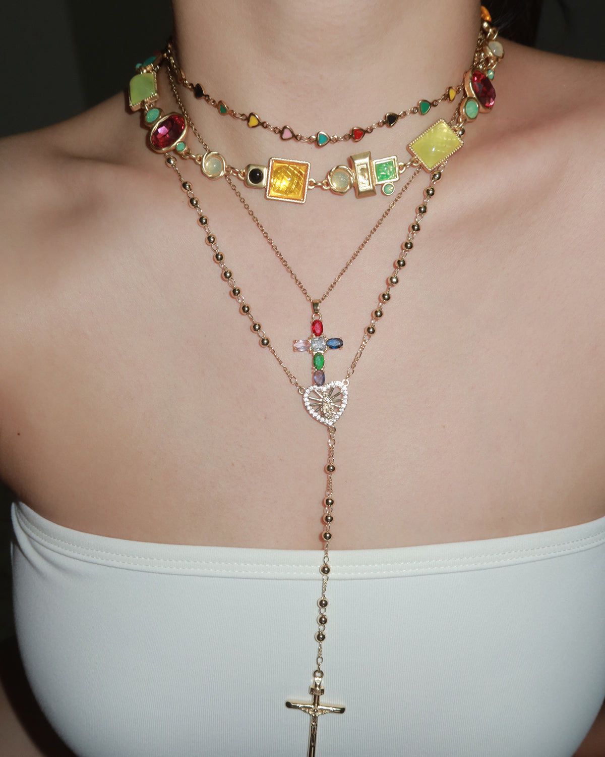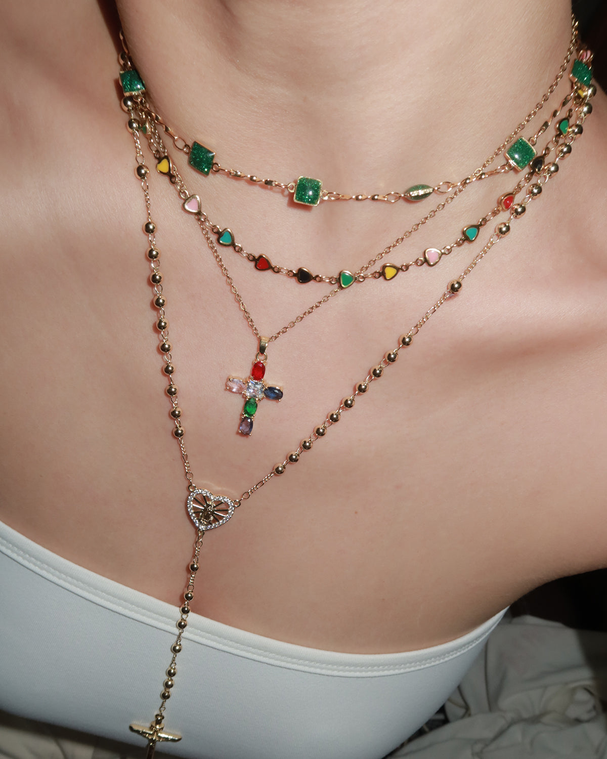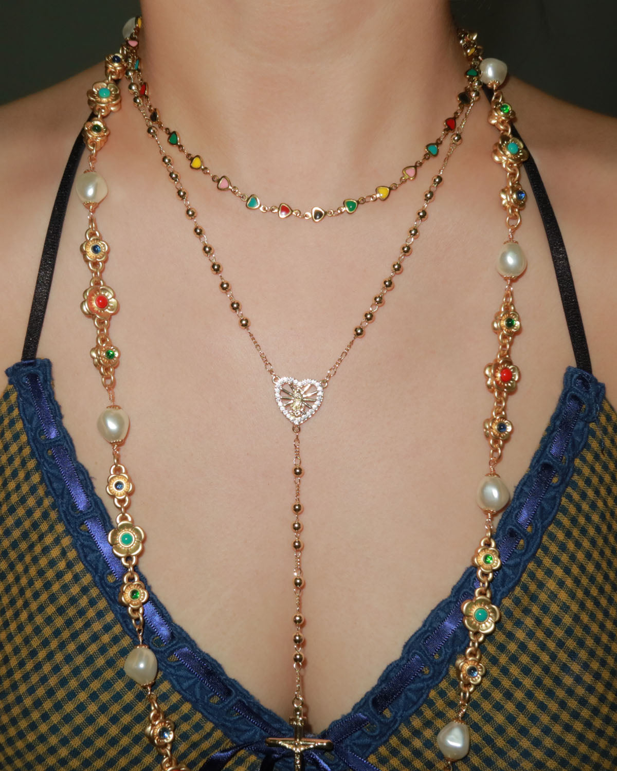 Eudora Rainbow Heart Enamel Beaded Golden Necklace