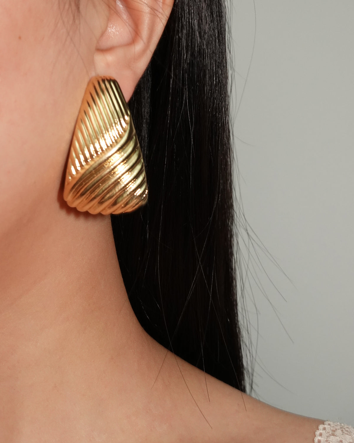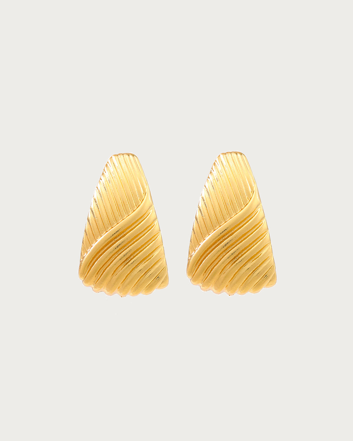 Elevate your jewelry collection with the Embossed Triangular Golden Stud Earrings, blending minimalism with artistic detailing.