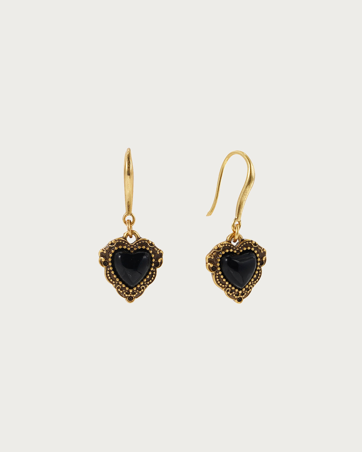 The Black Heart Golden Drop Earrings feature a modern, heart-shaped design, blending the boldness of black with the warmth of gold for a personalized, stylish accessory.