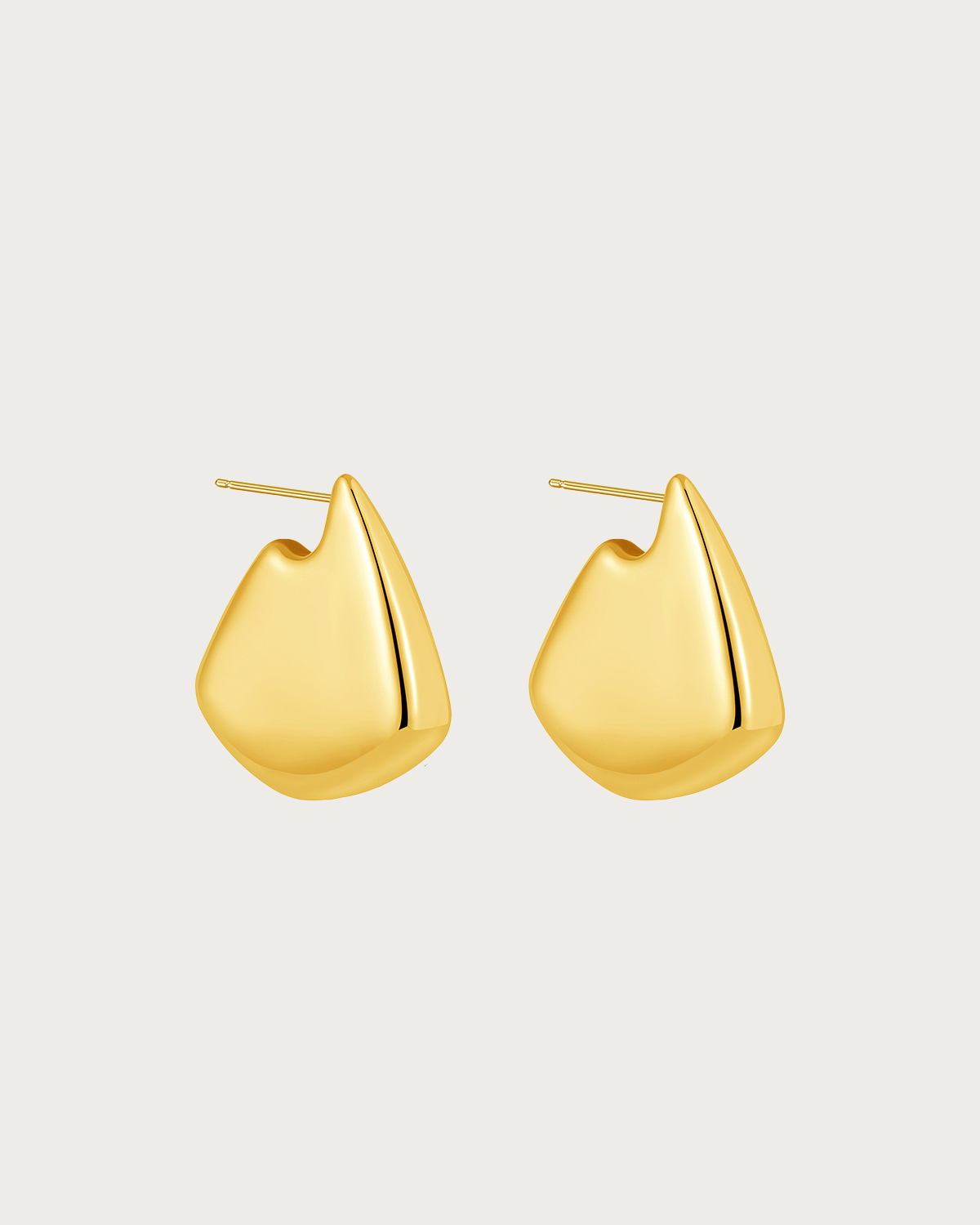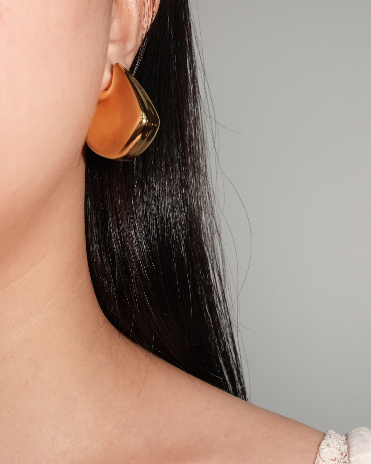 The geometric design adds depth and dimension, making these hoops a standout piece.