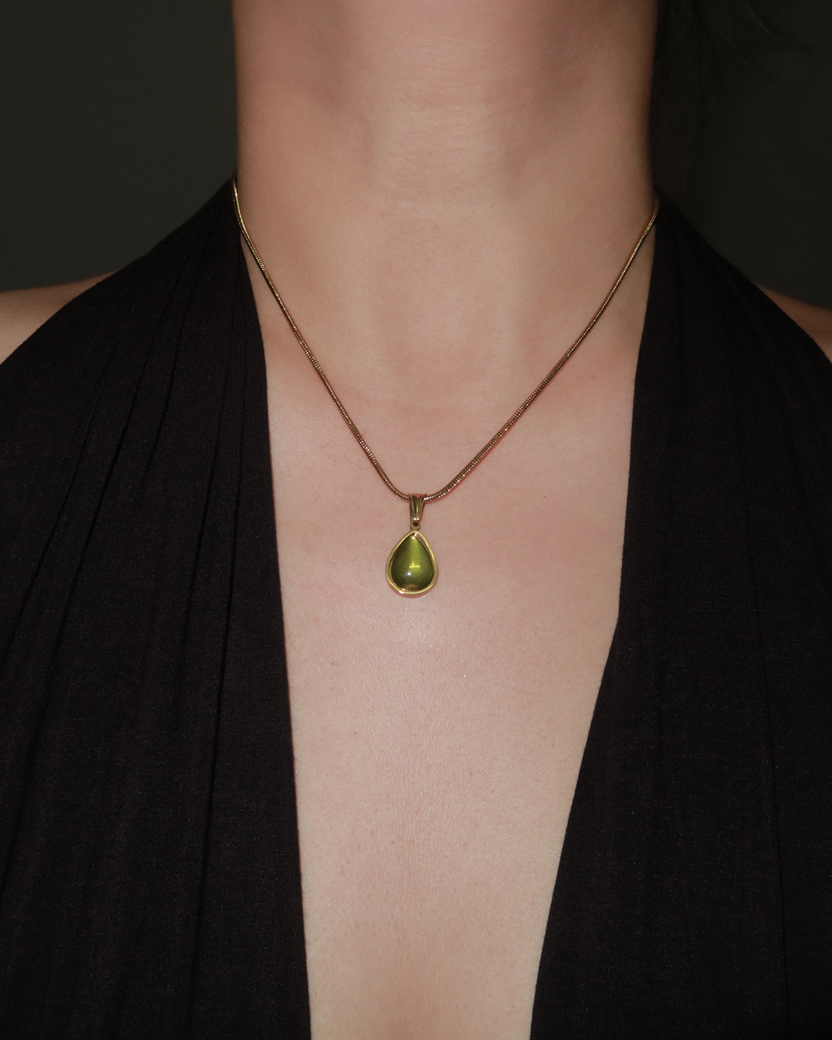 This beautiful waterdrop green golden necklace offers a unique design that enhances any outfit effortlessly.