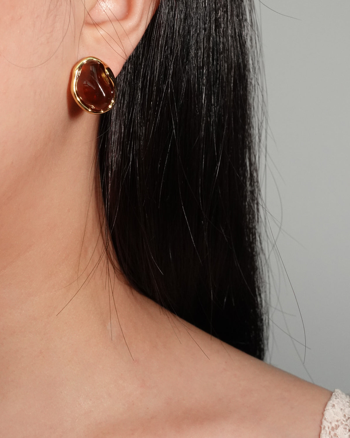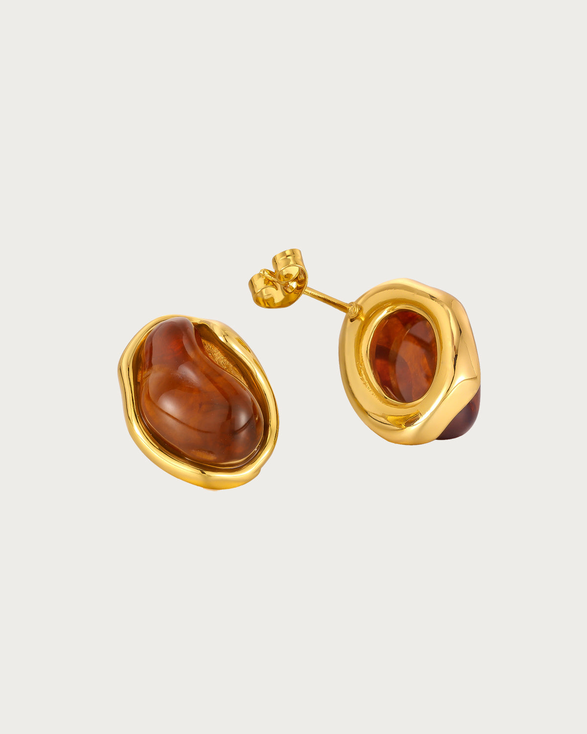 The classic stud design, enhanced with rich brown resin, makes these earrings a versatile accessory for any occasion.