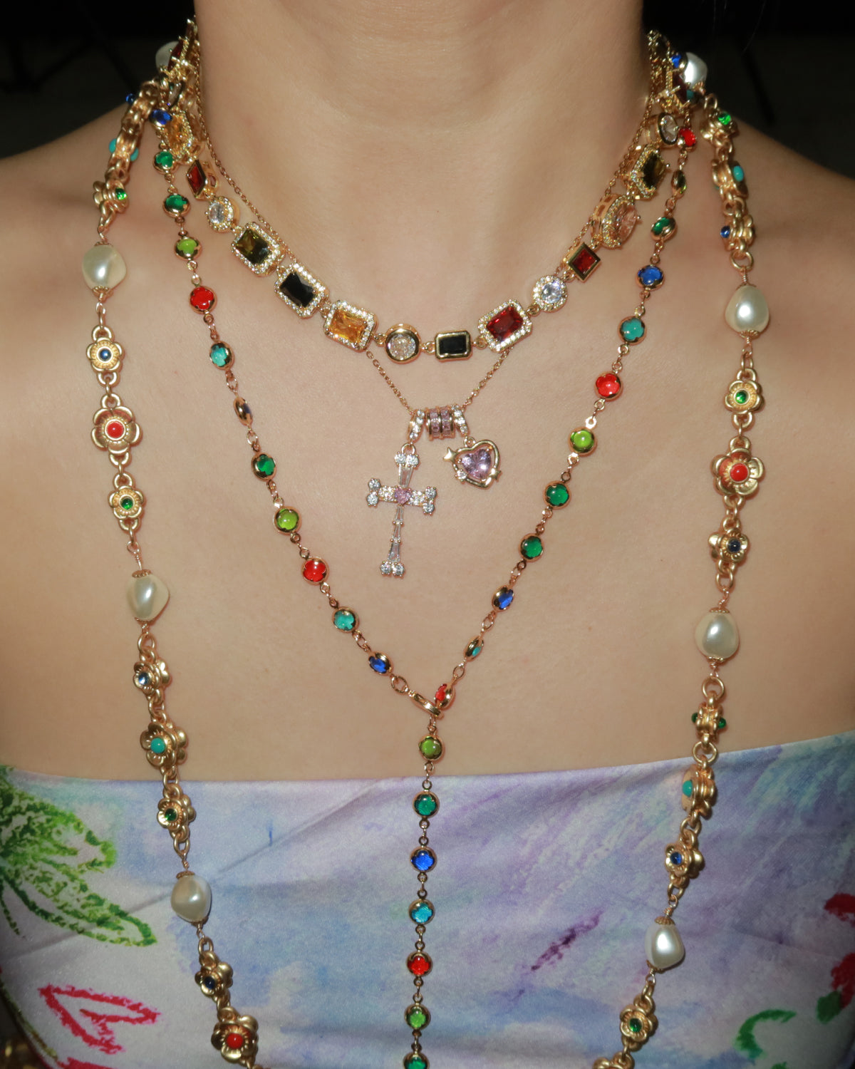 Ida Colorful Cross Style Golden Lariat Necklace