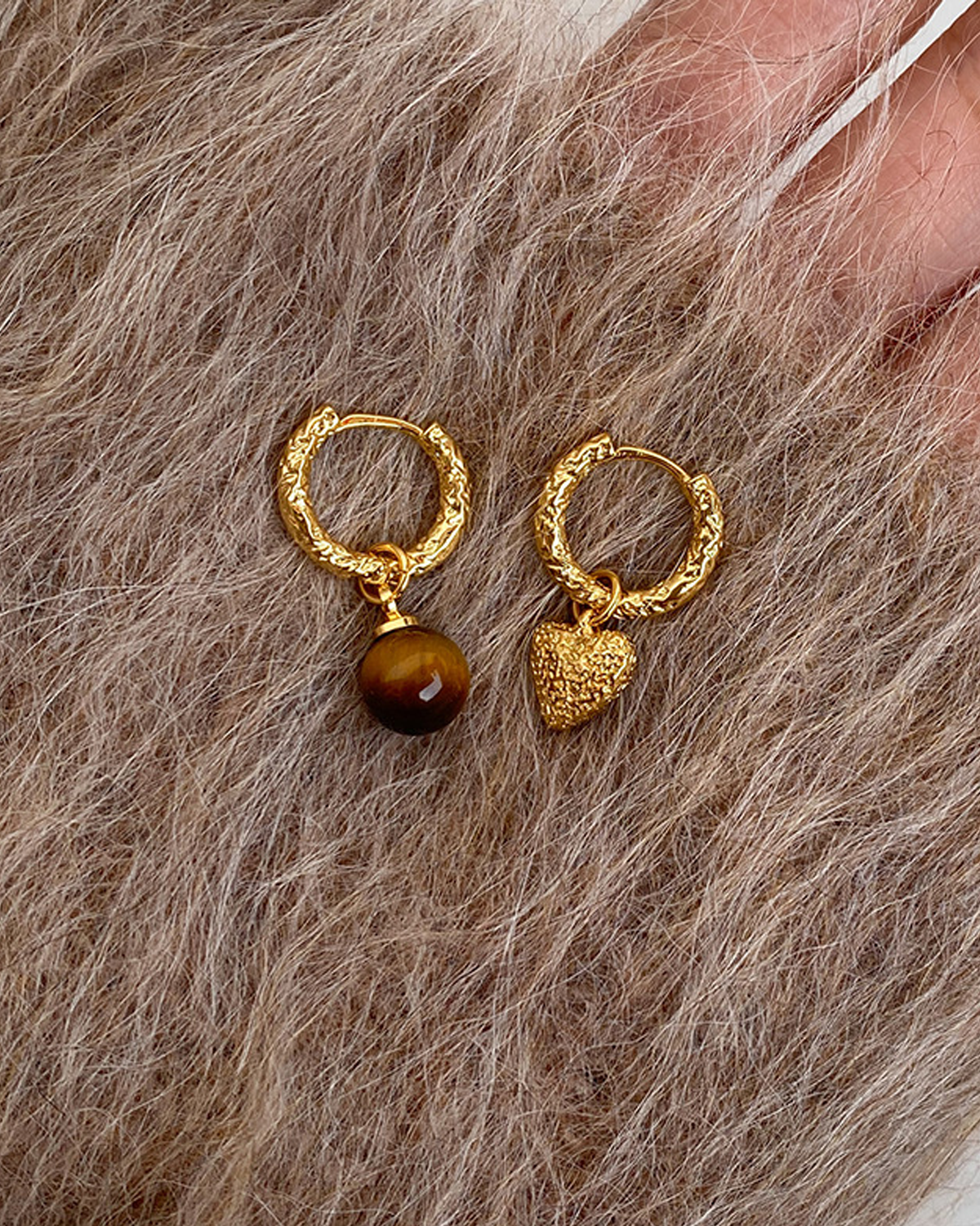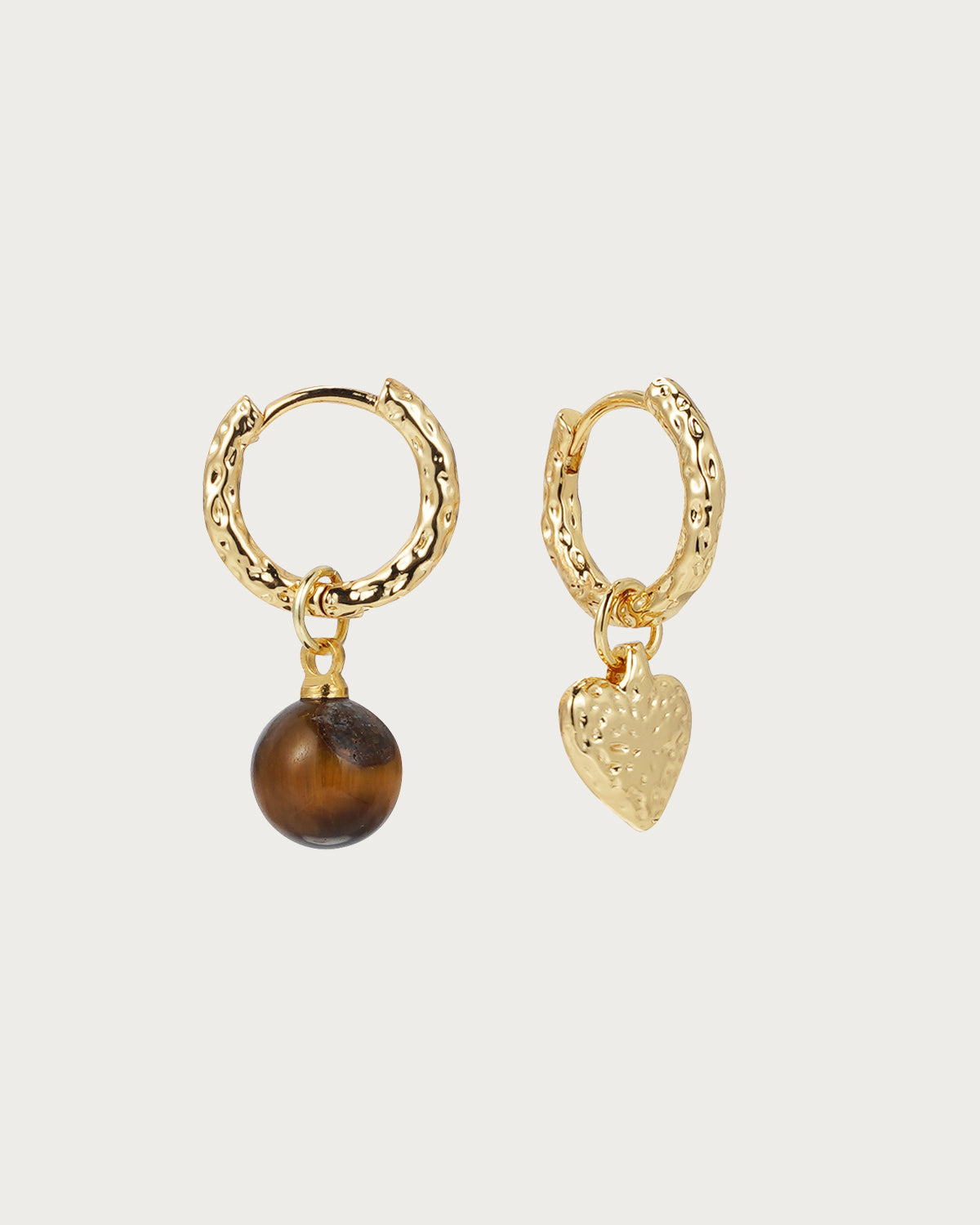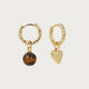 Leila Tiger Eye Stone Heart Brown Golden Hoop Earrings
