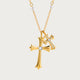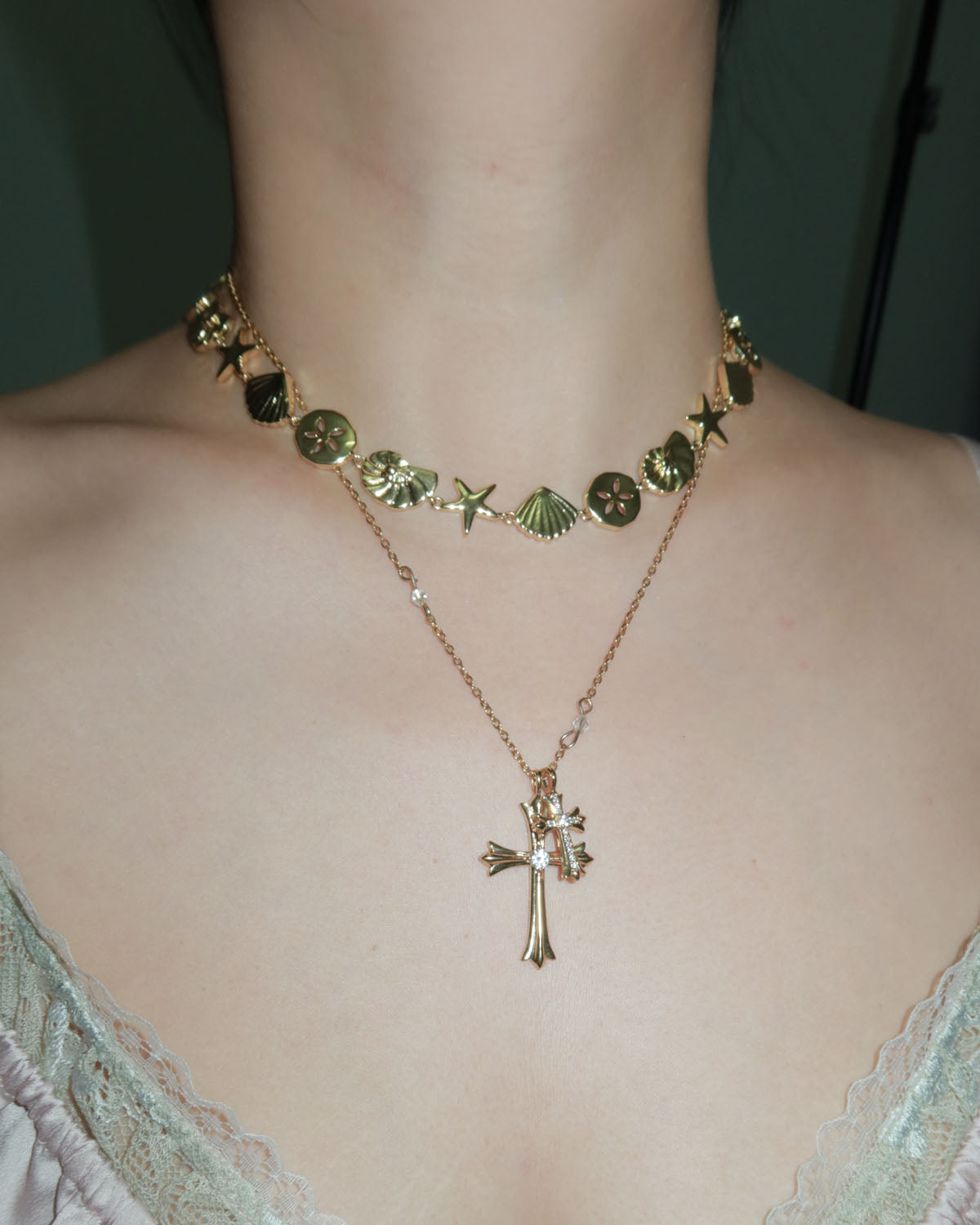 Wear this double cross golden necklace to represent strength and faith while adding a refined touch to any outfit.