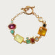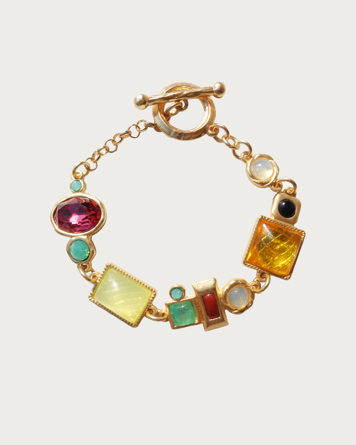 Embrace vintage charm with this retro-inspired jewelry piece. Featuring colorful geometric shapes and a soft matte golden finish, this versatile design doubles as a necklace or bracelet. A nostalgic nod to the 90s and early 2000s with a modern twist.