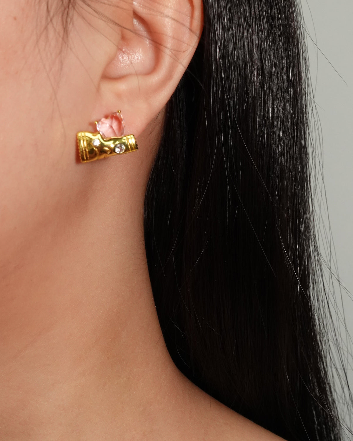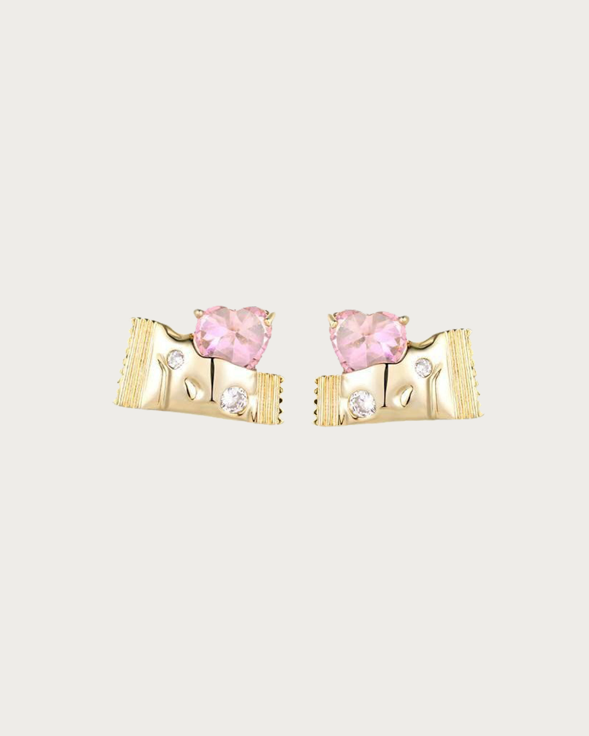 The Candy Pink Heart Golden Earrings bring a sweet and romantic charm with their glossy pink heart design set in radiant gold.
