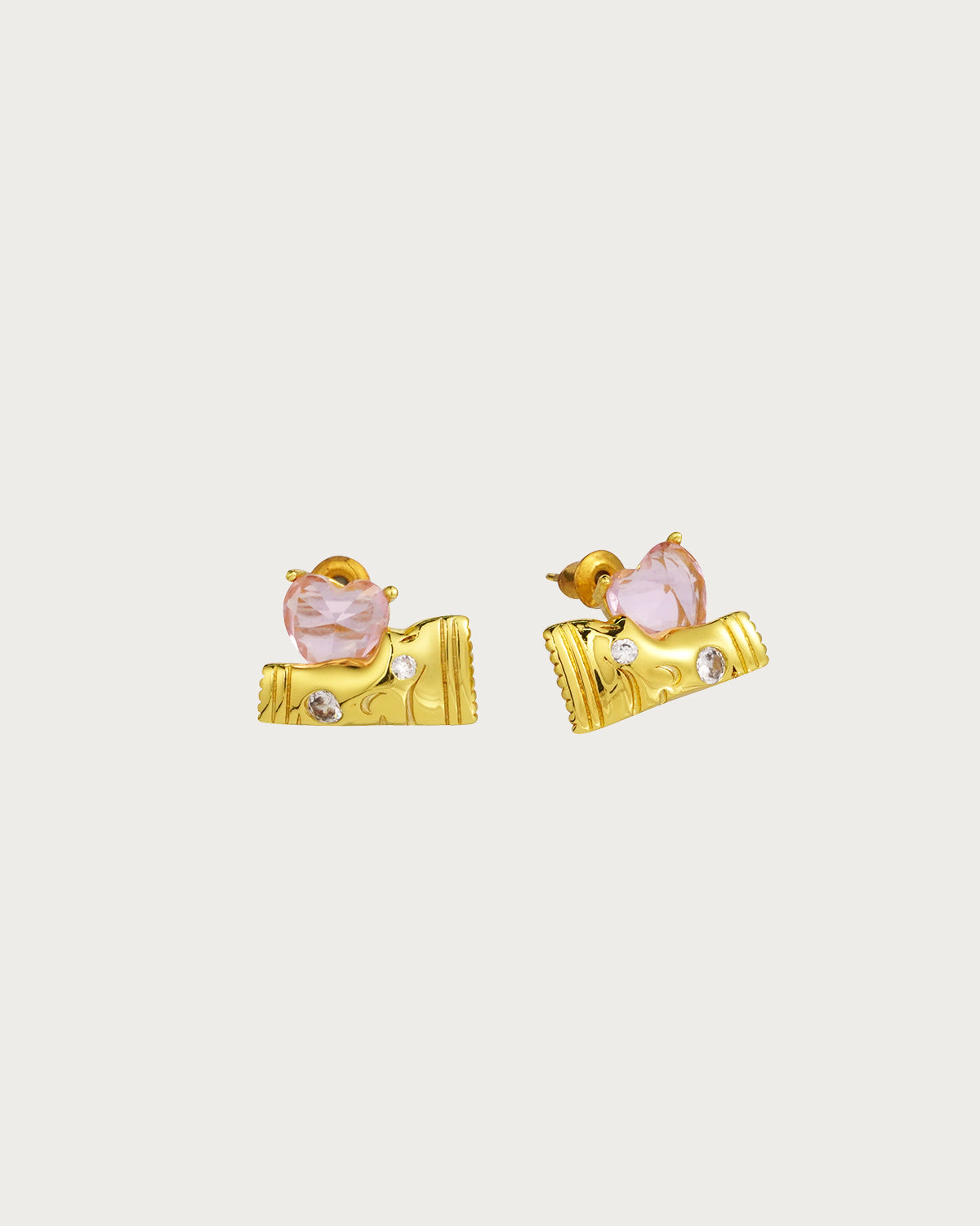 Bella Candy Pink Heart Golden Stud Earrings