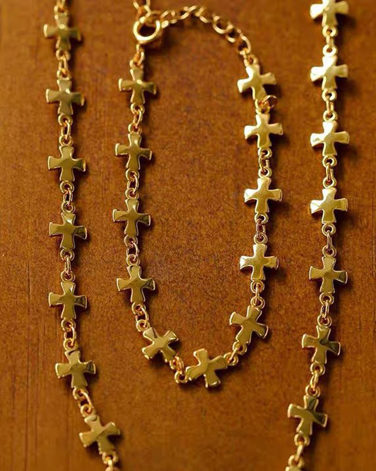 Simple yet stylish, this dainty gold cross link necklace adds a meaningful touch to your jewelry collection. Perfect for layering or wearing as a standalone statement.