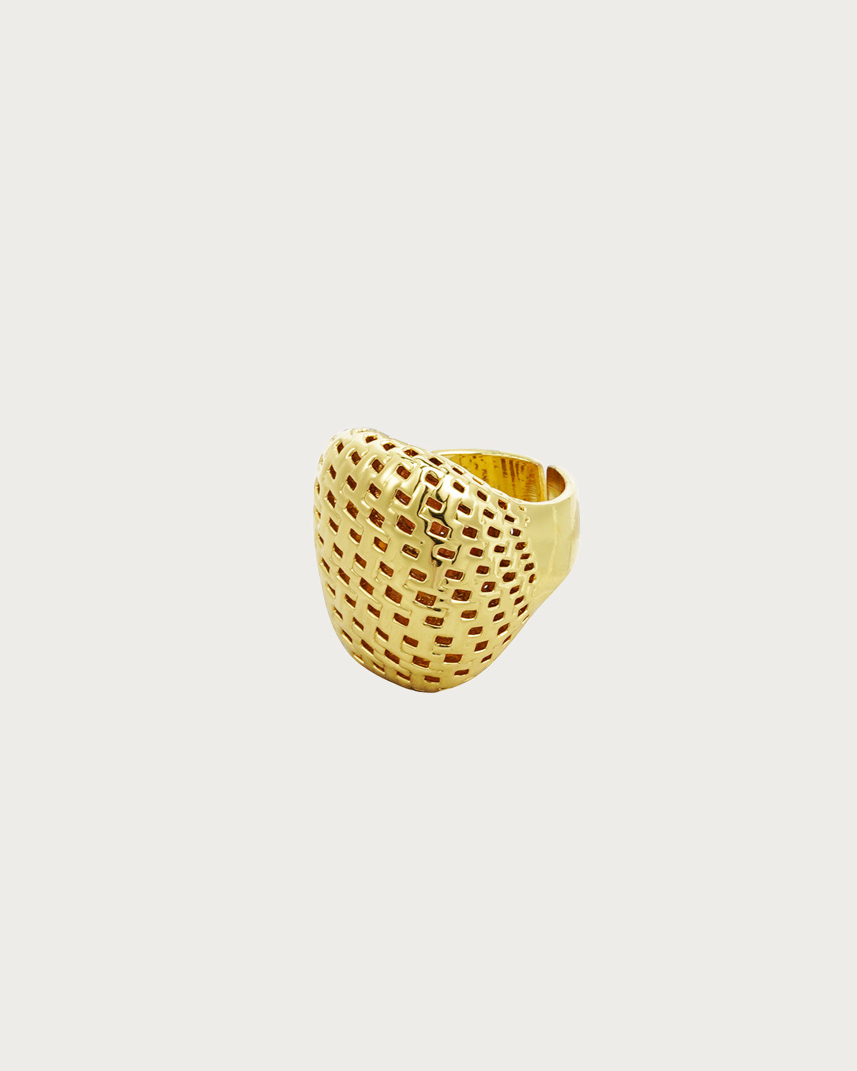 This Woven Golden Ring showcases a detailed woven pattern in gold, creating a timeless and personalized piece that reflects both craftsmanship and style.