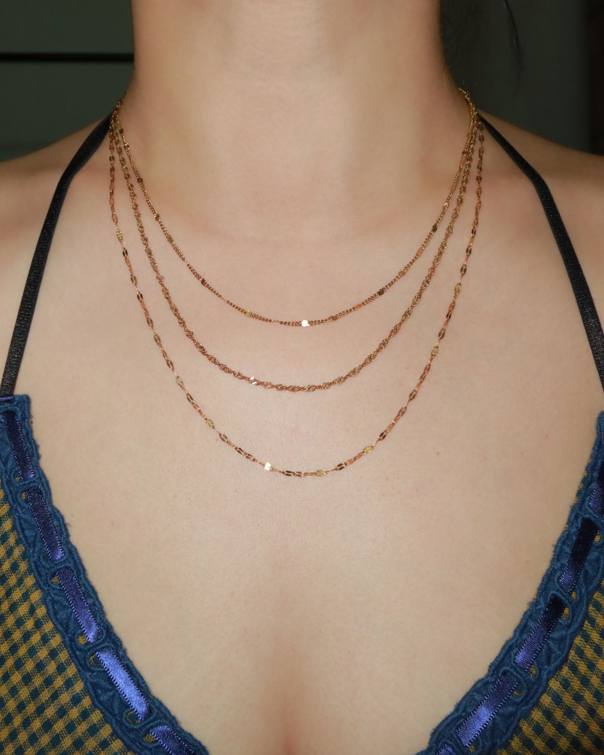 Dorothy Triple Layered Golden Chain Necklace