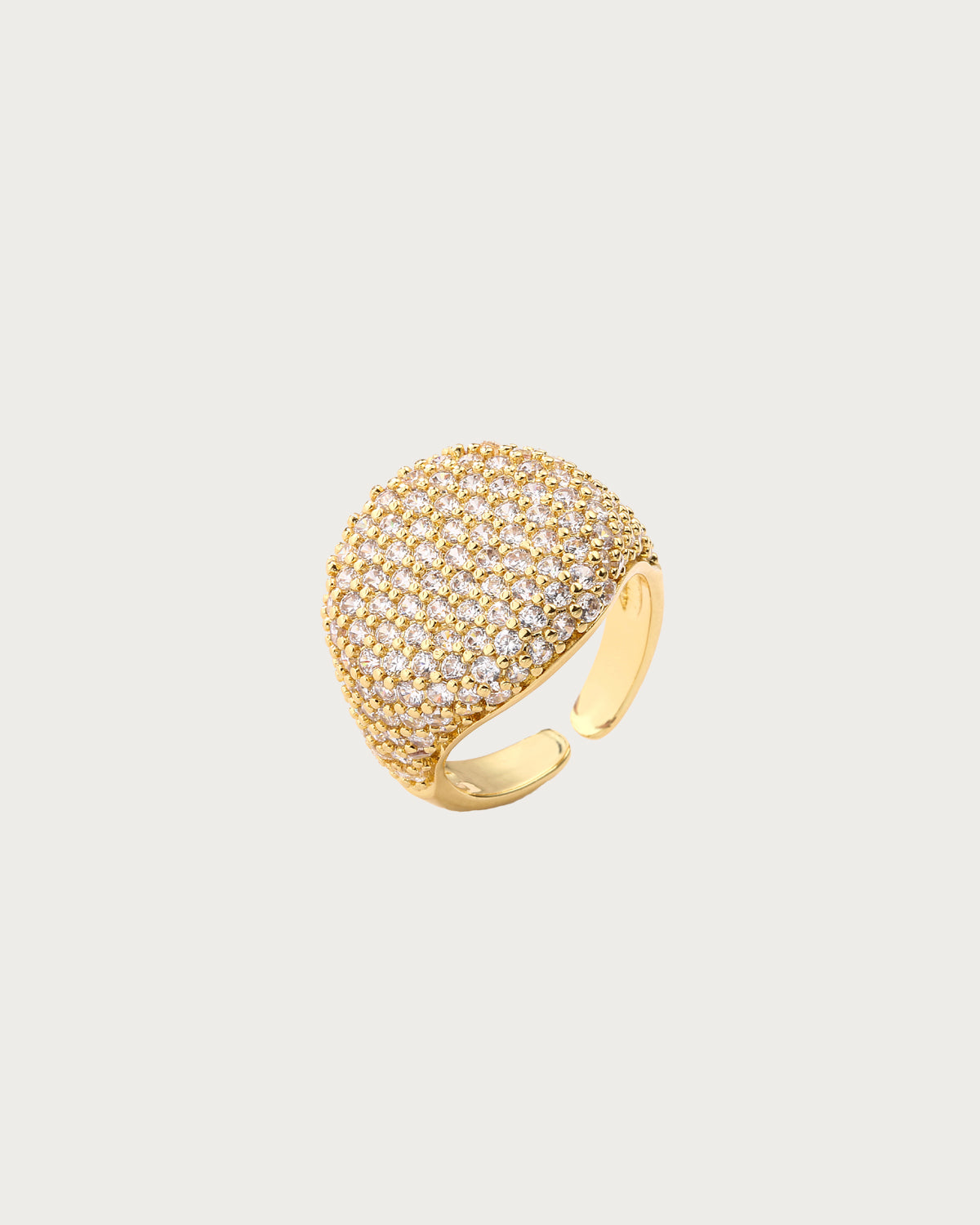 A modern twist on a classic signet ring, paved with crystals for a chic, everyday look.