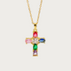 Elvira Colorful Stone Cross Golden Pendant Necklace