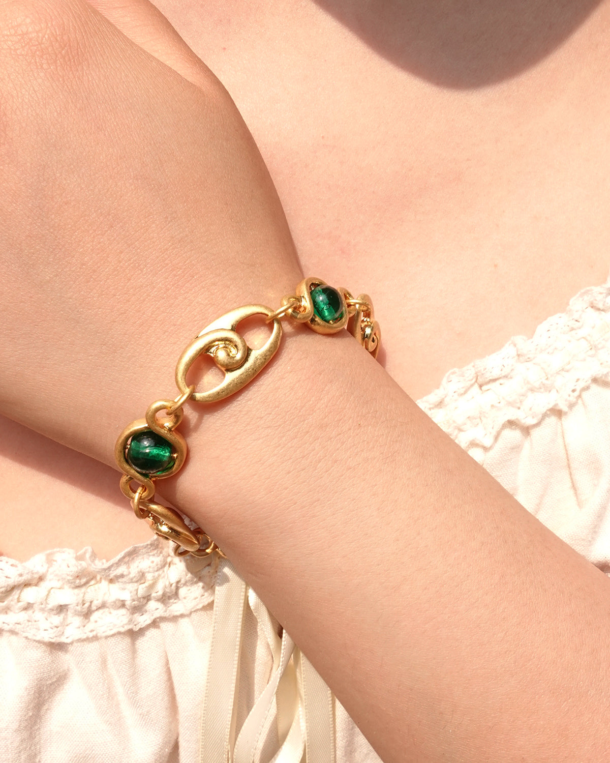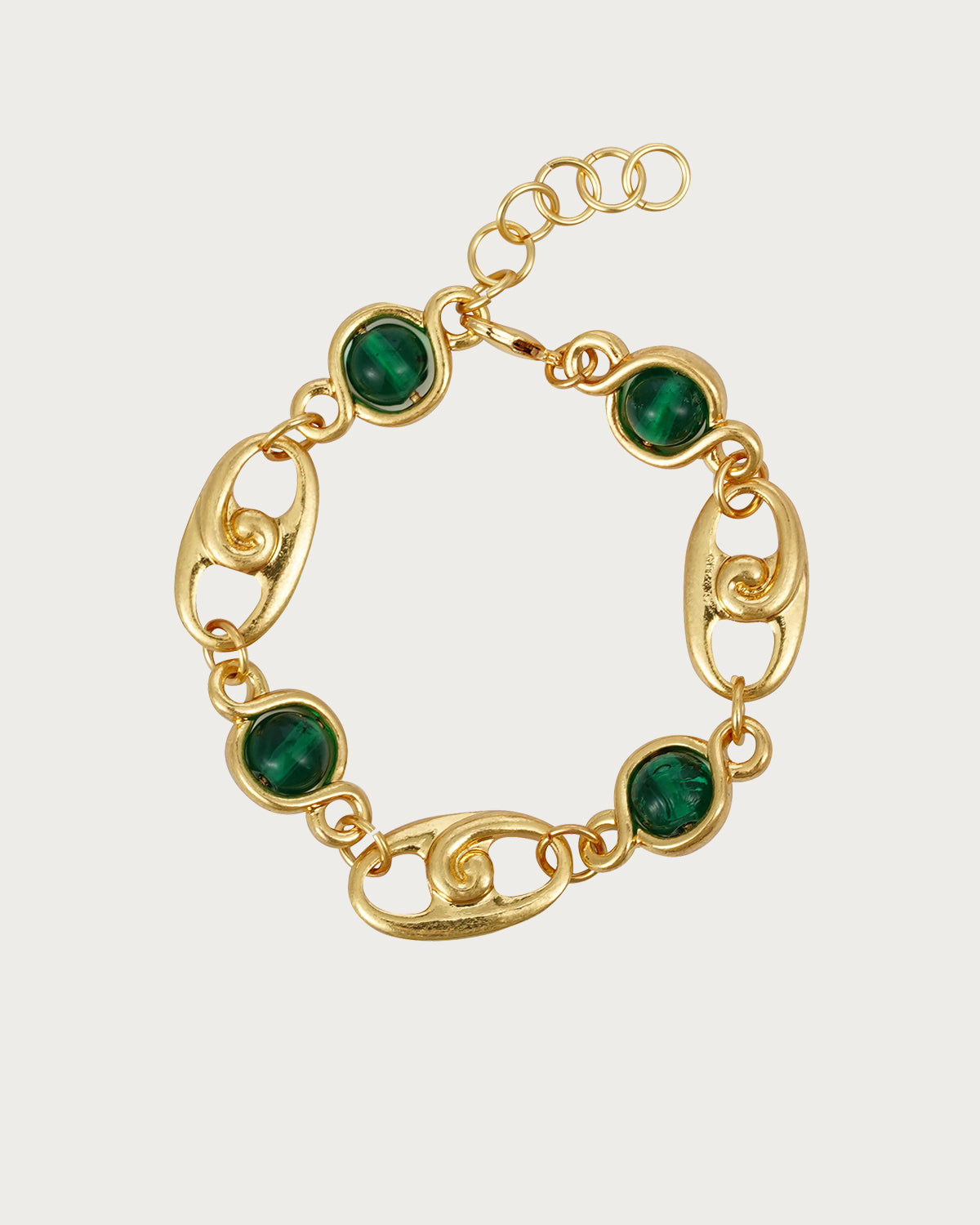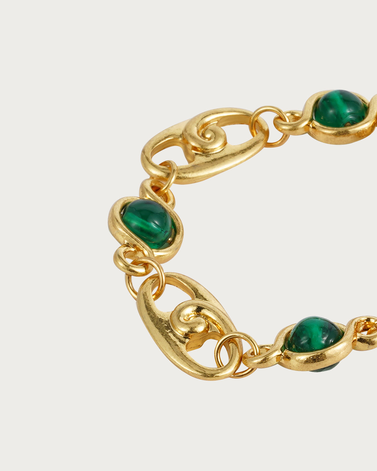 The Geometry Green Golden Bracelet stands out with its modern design and vibrant green accents, offering a personalized touch that elevates your jewelry collection.