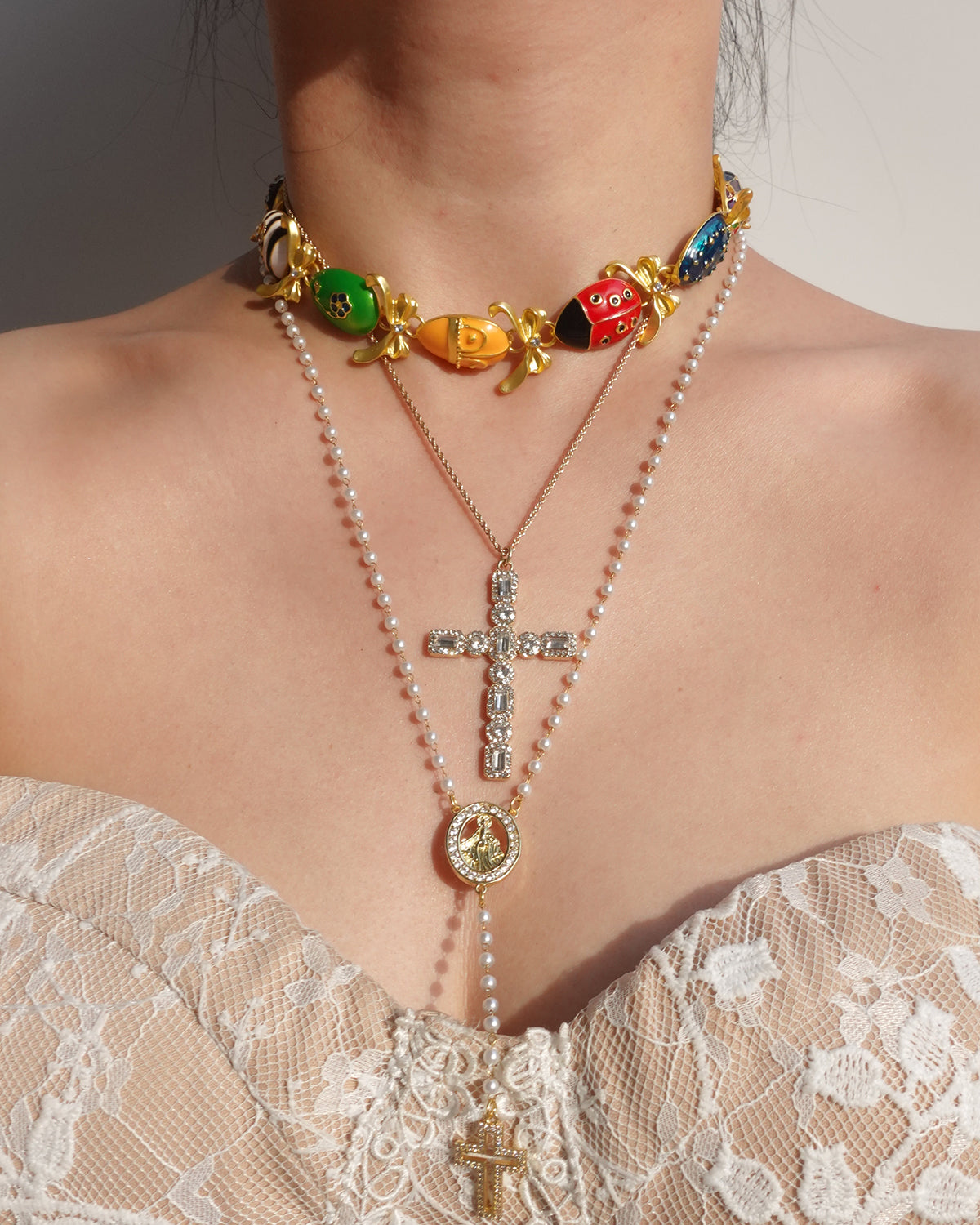 The Sparkling Cross Golden Necklace combines a classic cross design with dazzling crystals, creating a piece that radiates sophistication and grace.