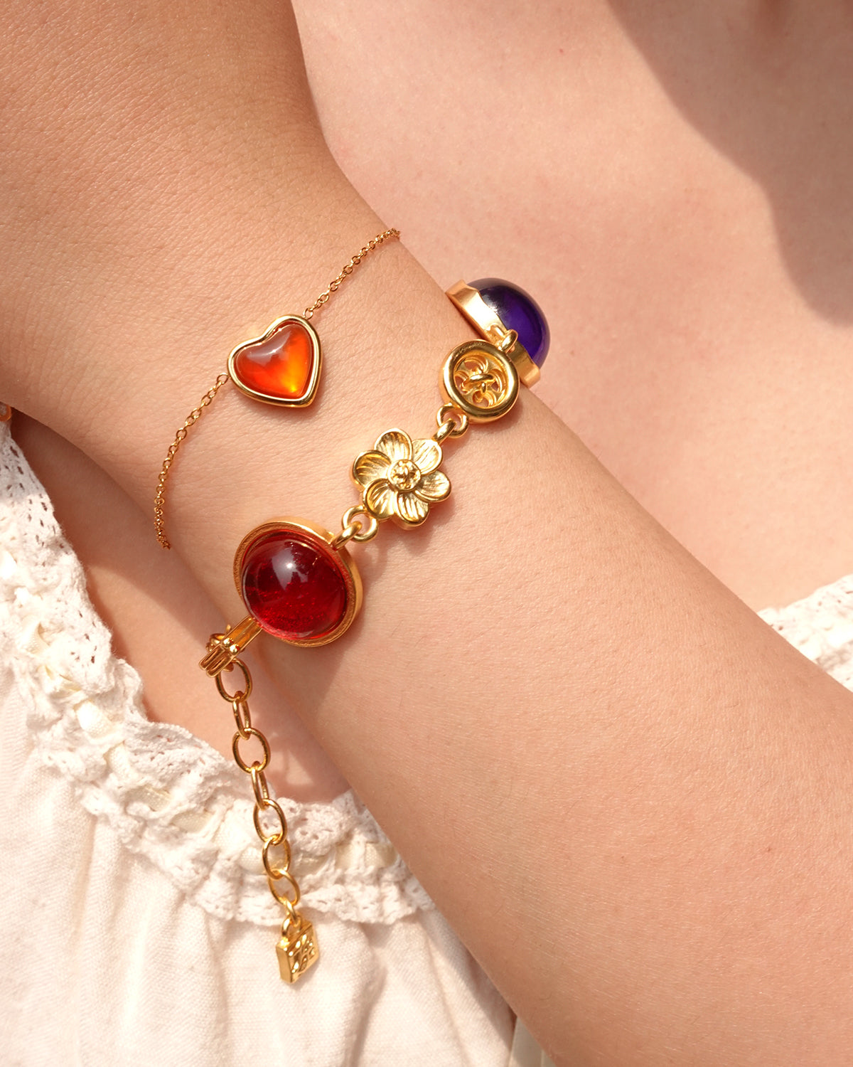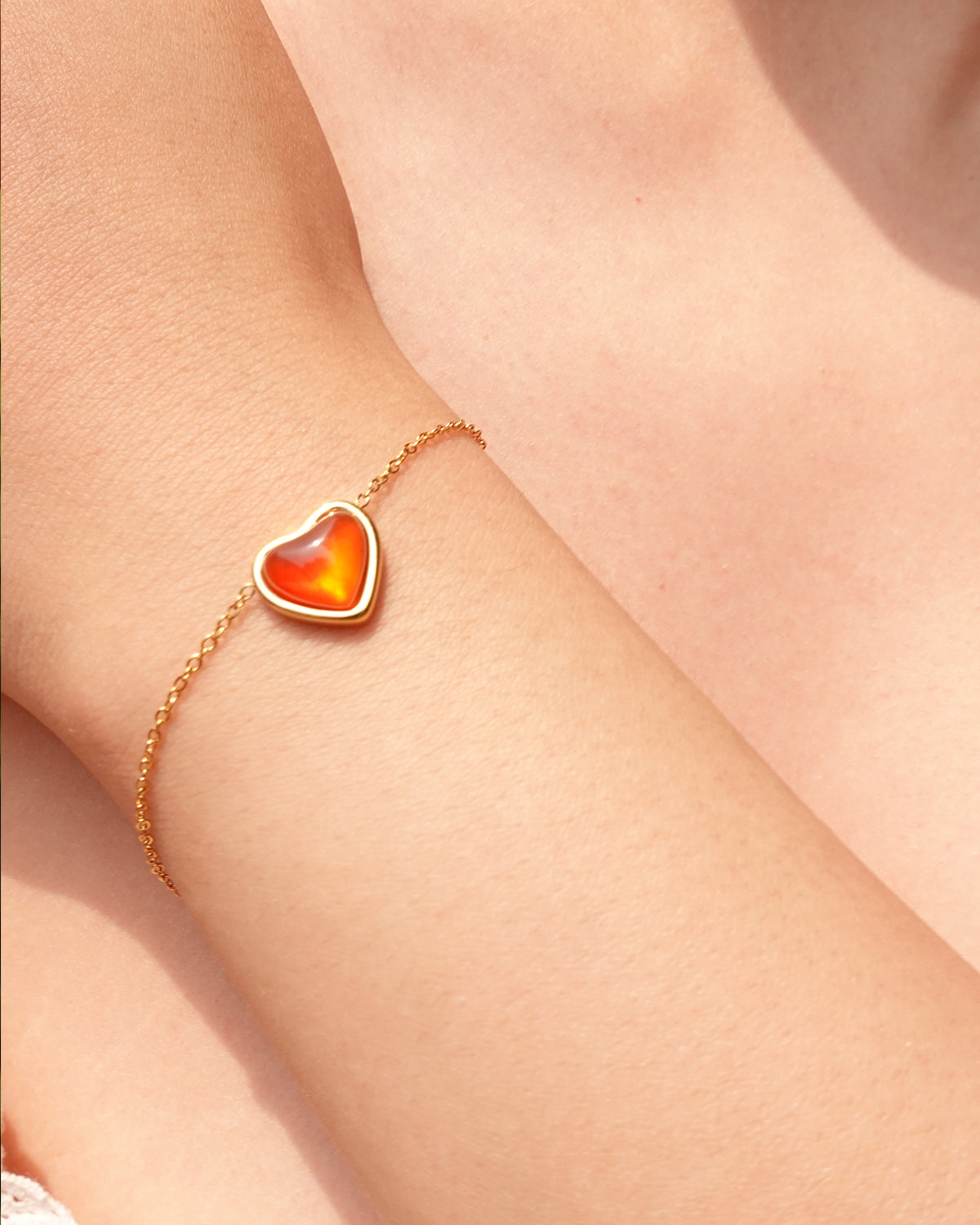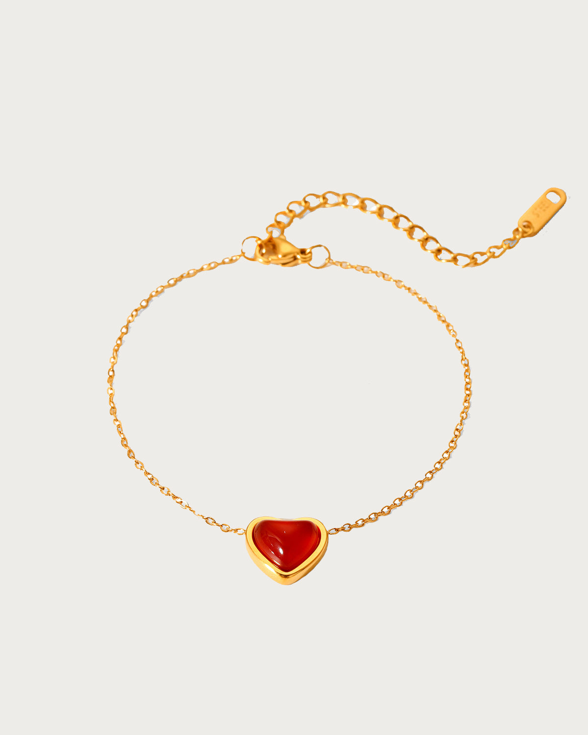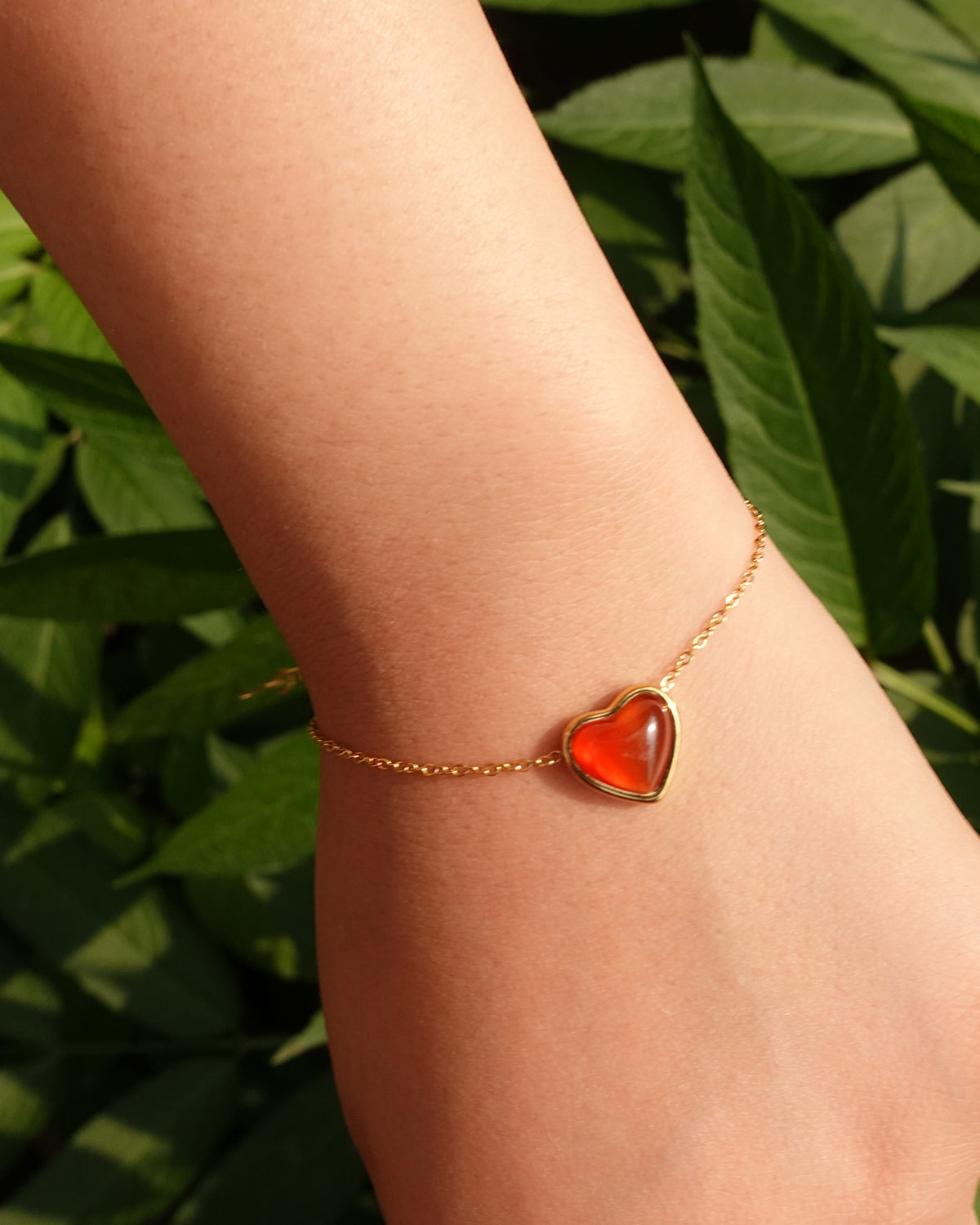 Judith Red Carnelian Stone Heart Golden Bracelet