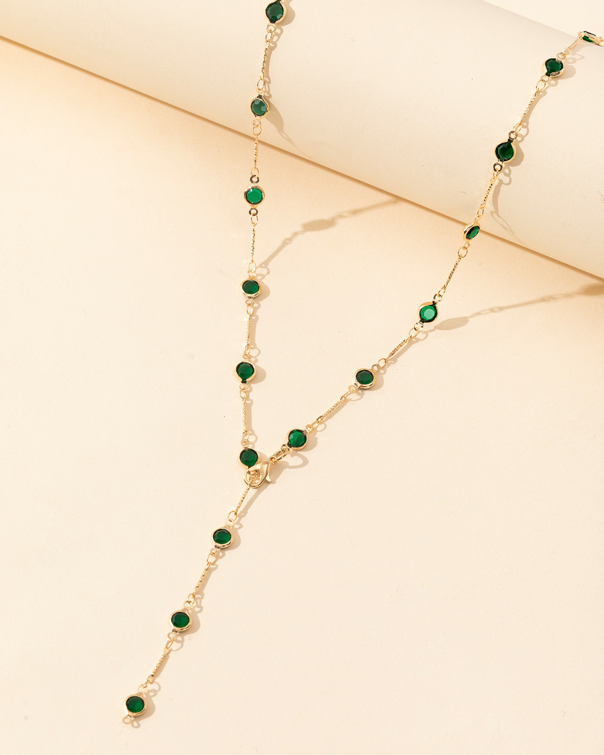 Featuring a sleek lariat design, this Green Circle Golden Lariat Necklace offers a modern and sophisticated touch to any look.