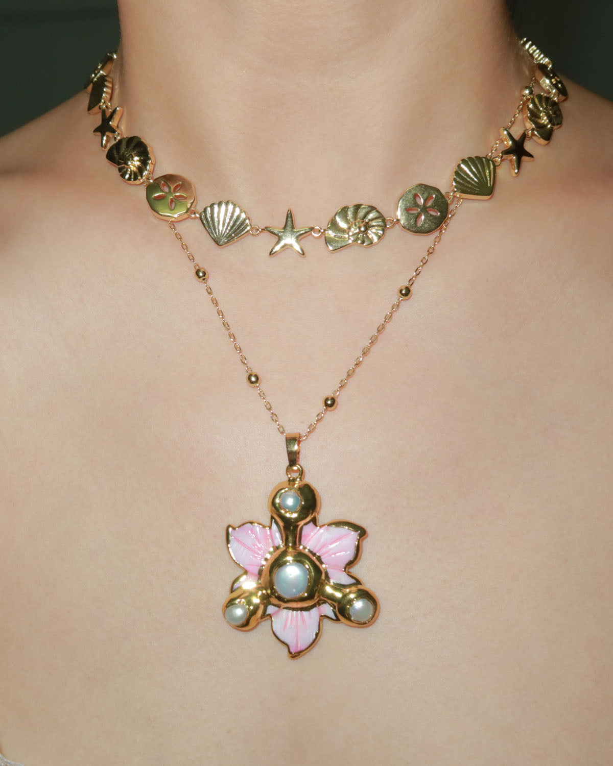 This necklace combines the beauty of a star and a shell, set in gold, creating a charming and versatile accessory that adds a natural, chic touch to any ensemble.