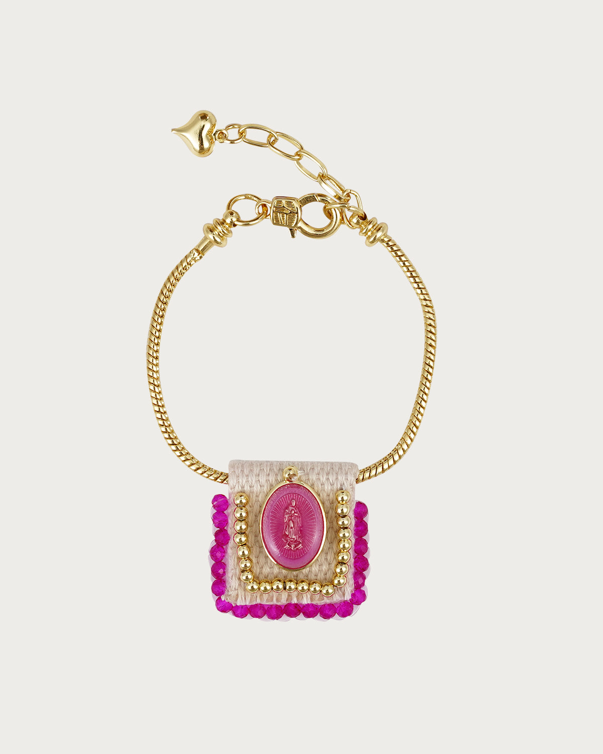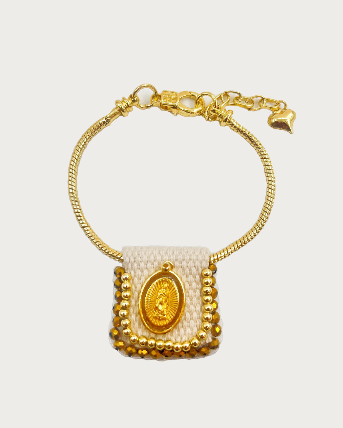 The Virgin Mary Golden Bracelet features a beautifully crafted Virgin Mary medallion, offering a blend of divine protection and timeless elegance.