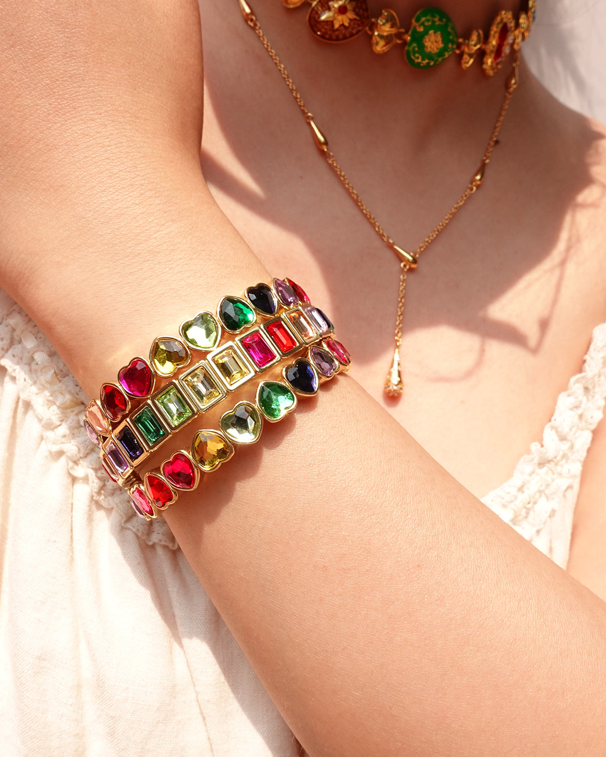 Theresa Rainbow Colorful Heart Golden Bracelet